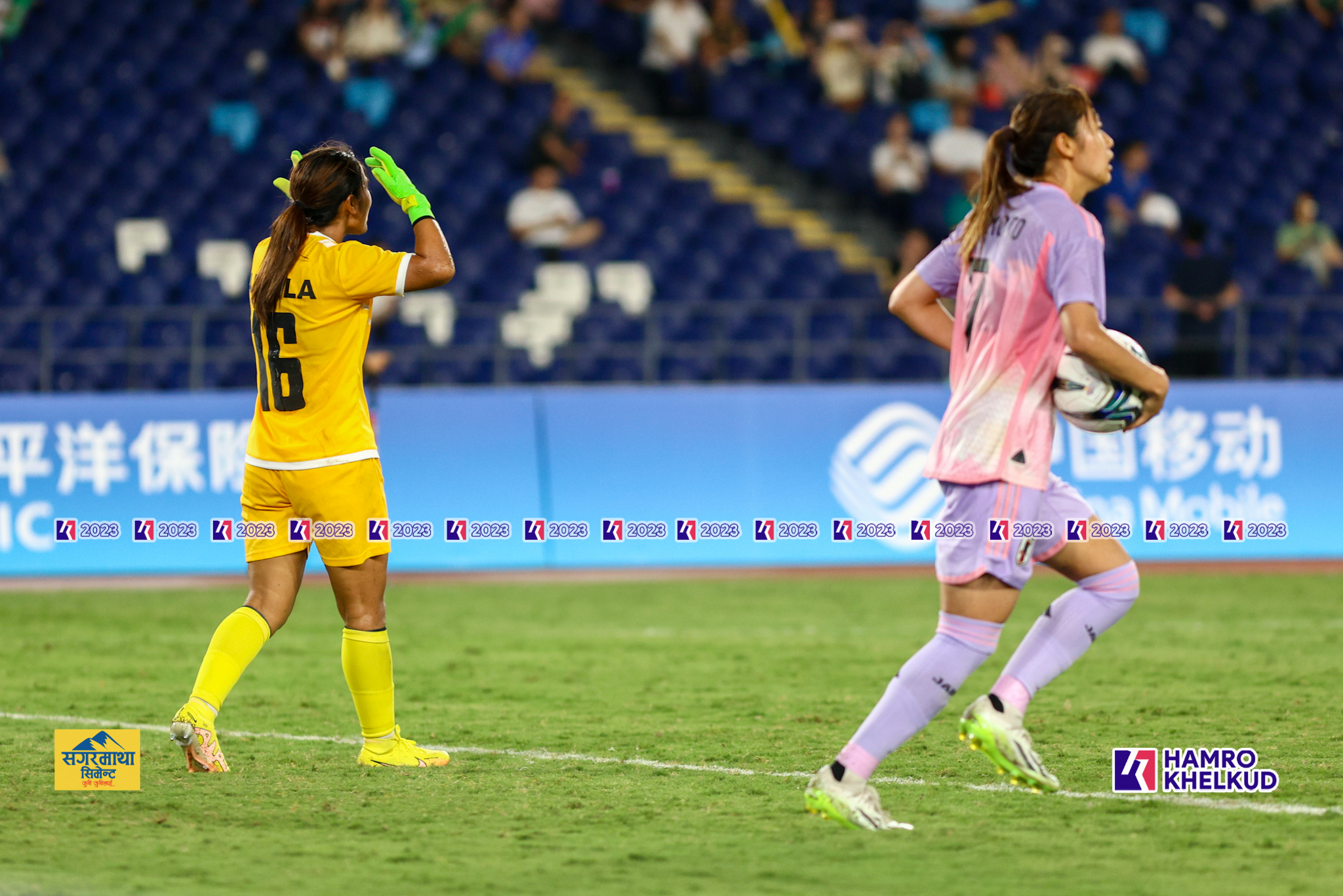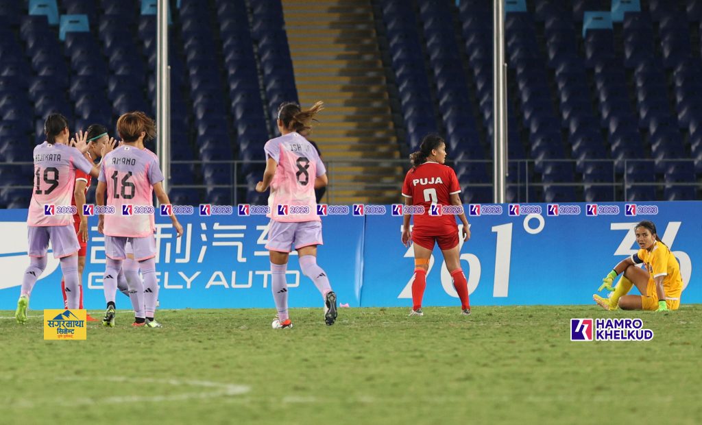 वेन्झौ (हाम्रो खेलकुद) – नेपाली महिला राष्ट्रिय फुटबल टोलीले १९ अौं एसियाली खेलकुद अन्तर्गत समूह चरणको दोस्रो खेलमा जापानसँग फराकिलो हार बेहोरेको छ ।