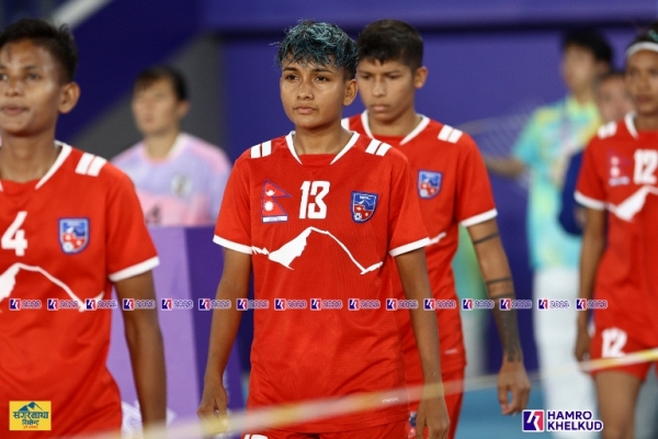हाङ्गचौं (हाम्रो खेलकुद)– रेखा पौडेलको गोलमा नेपाल १९ औं एसियाली खेलकुद (एसियाड) को आफ्नो अन्तिम खेलमा हारबाट जोगिएको छ । हाङ्गचौमा जारी १९ औं एसियाडमा बिहीबार नेपाल र बंगलादेशले बराबरी खेलेका छन् । ।