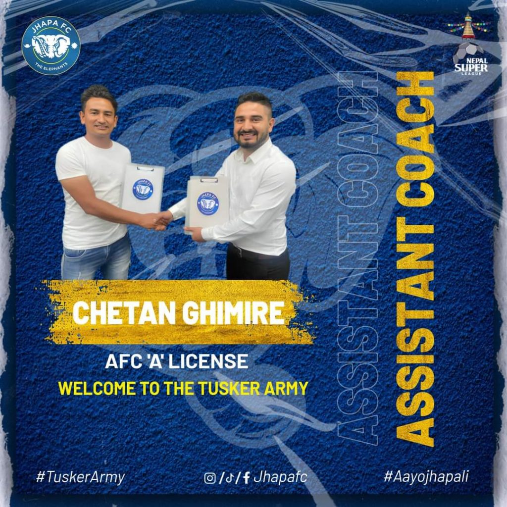 यद्यपि झापाले मुख्य प्रशिक्षक भने नियुक्त गरिसकेको छैन। सहिद स्मारक ए डिभिजन लिगको पछिल्लो सिजनमा घिमिरे पुलिसको मुख्य प्रशिक्षक थिए । उनले पुलिसलाई लिगको तेस्रो स्थान हासिल गराएका थिए।