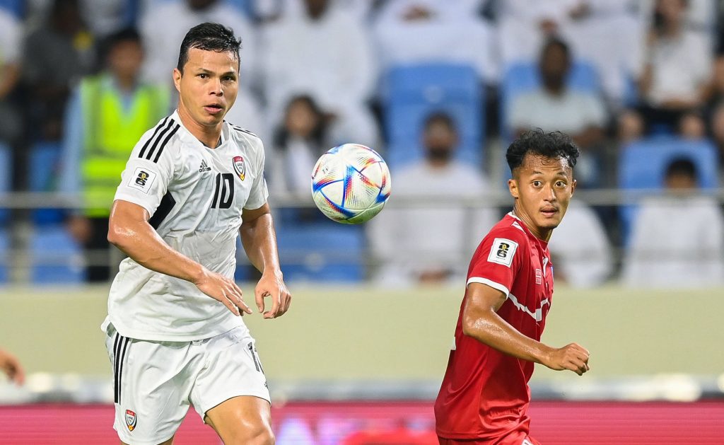 युएईका कीर्तिमानी गोलकर्ता अलि मखबूटले पेनाल्टीमा सहजै गोल गर्दै अग्रता दोब्बर बनाए ।