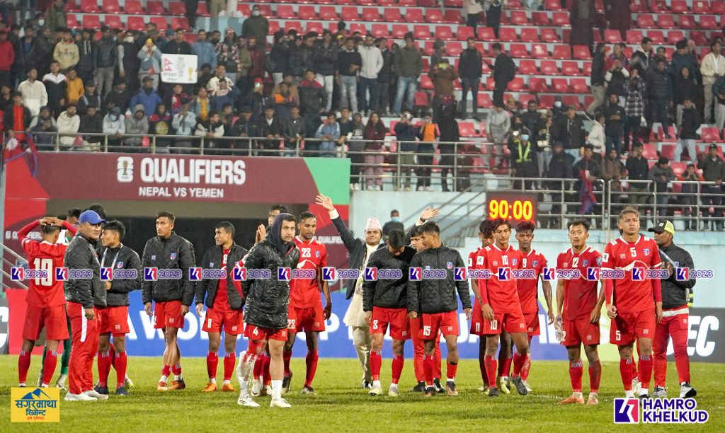 काठमाडौं (हाम्रो खेलकुद) – नेपाली राष्ट्रिय फुटबल टोलीका डिफेन्डर अनन्त तामाङ यमनविरुद्ध मंगलबार भएको फिफा विश्वकप २०२६ छनोटको खेलमा घाइते भए । चोट बोकेपछि स्ट्रेचरमा बाहिर लगिएका अनन्तको स्थिति सामान्य रहेको छ ।