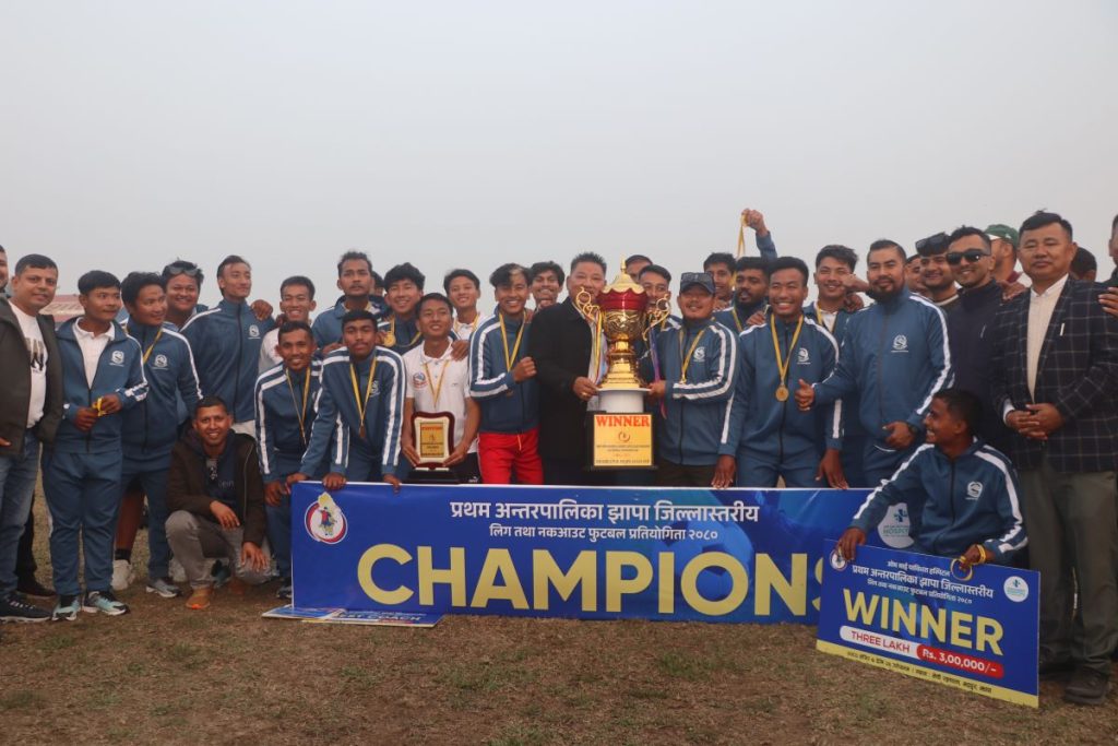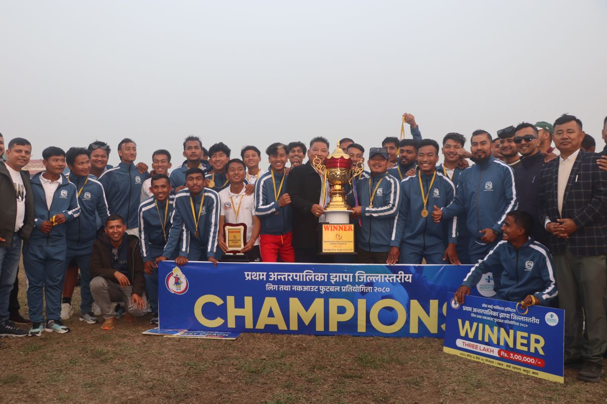 अर्जुनधारा नगरपालिकाले साई पाथिभरा हस्पिटल प्रथम अन्तरपालिका जिल्लास्तरीय लिग तथा नकआउट फुटबल प्रतियोगिताको उपाधि छ ।