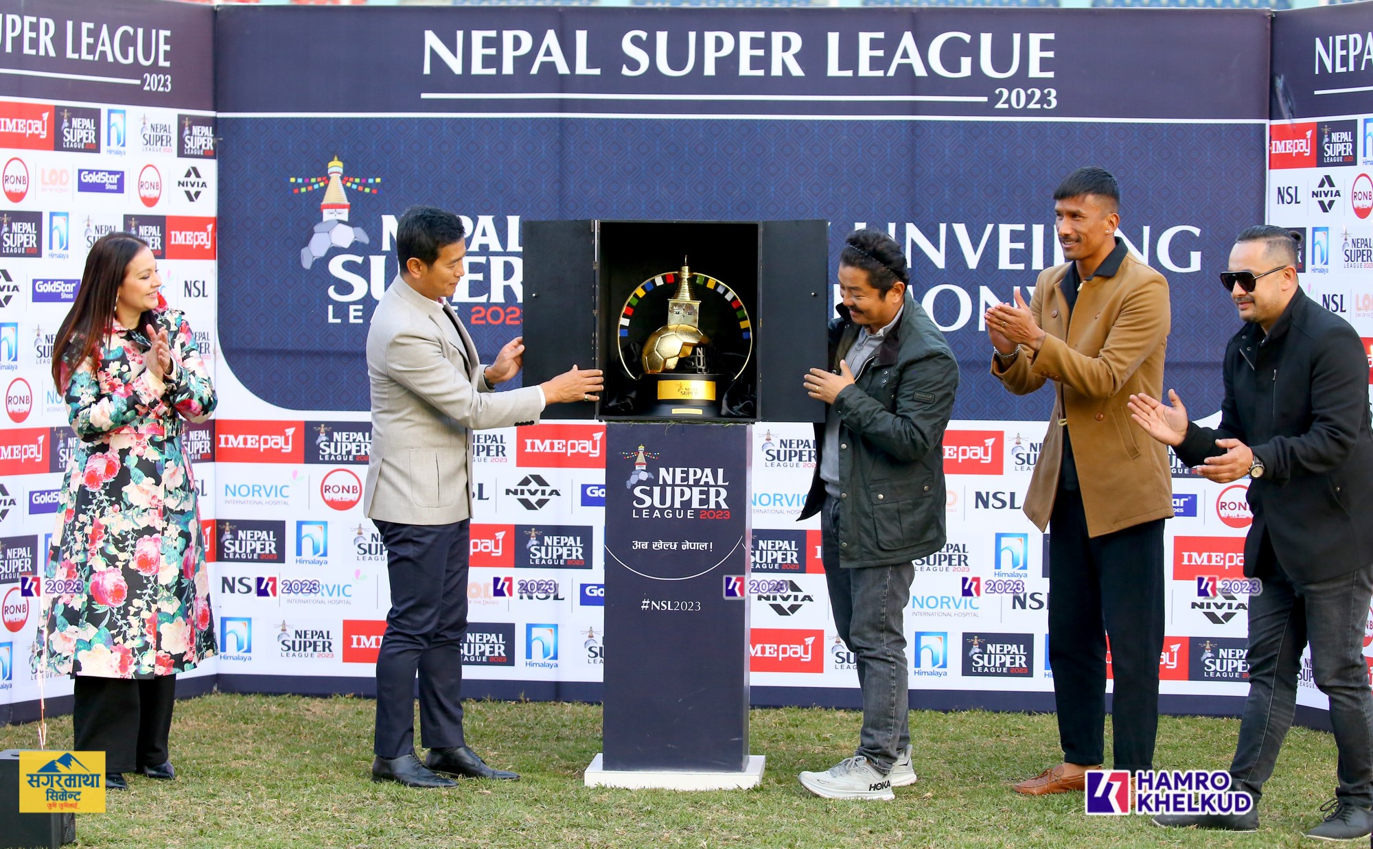 एनएसएल आयोजक नेपाल स्पोर्ट्स एन्ड इभेन्ट्स म्यानेजमेन्ट (एनएसईएम) ले ट्रफी अनावरणका अभिनेता दयाहाङ राईसँगै भारतीय राष्ट्रिय टोलीका पूर्व कप्तान भाइचुङ भुटियालाई निमन्त्रणा दिएको थियो । राई र भुटियाले संयुक्त रुपमा ट्रफी अनावरण गरेका थिए ।