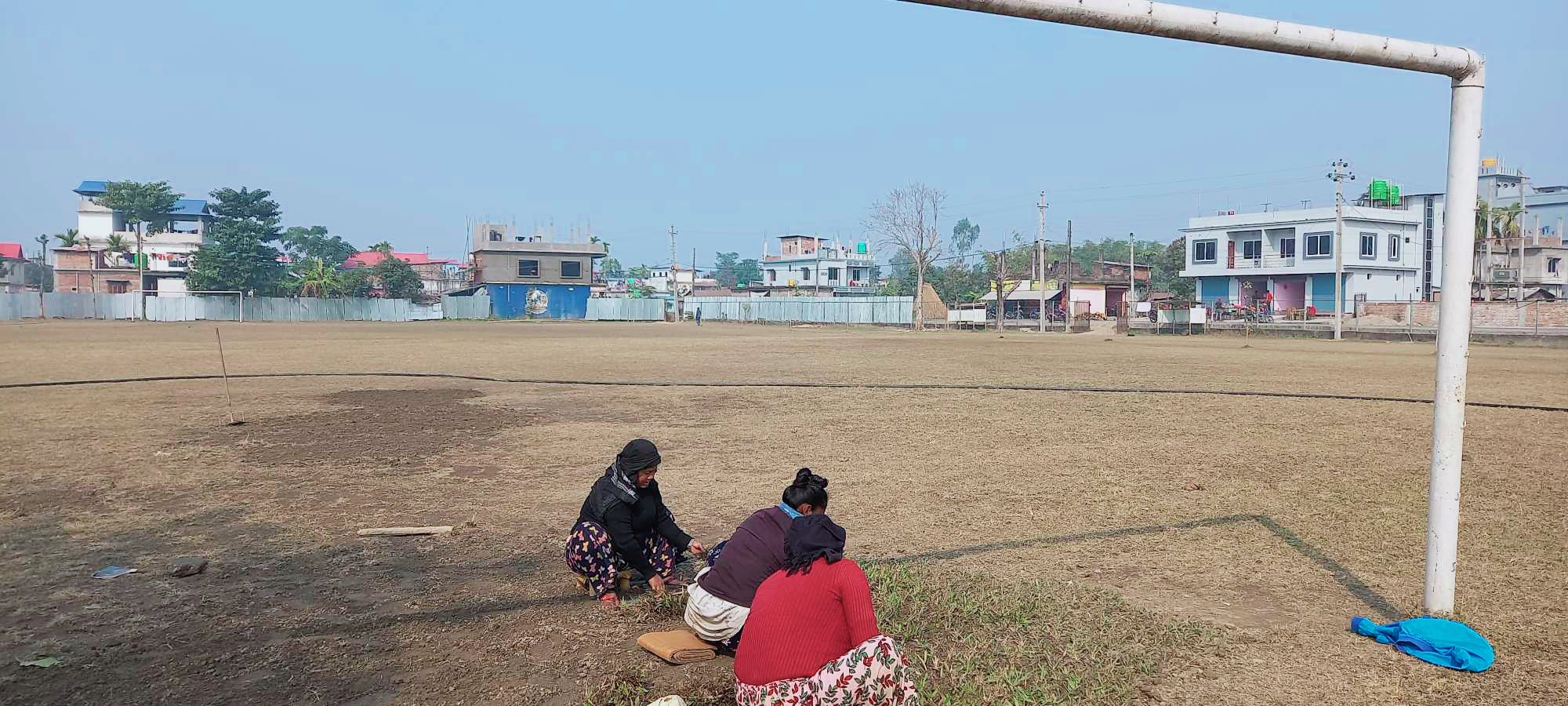 झापा गोल्डकपजस्तो प्रतिष्ठित प्रतियोगिता हुने सो मैदानको आकर्षण नघटोस् भनेर आयोजक समितिले काम सुरु गरेको हो । रंगशालामा उम्रिएका अनावश्यक झार उखेल्ने तथा प्राकृतिक घाँस रोप्ने काम थालिएको छ ।