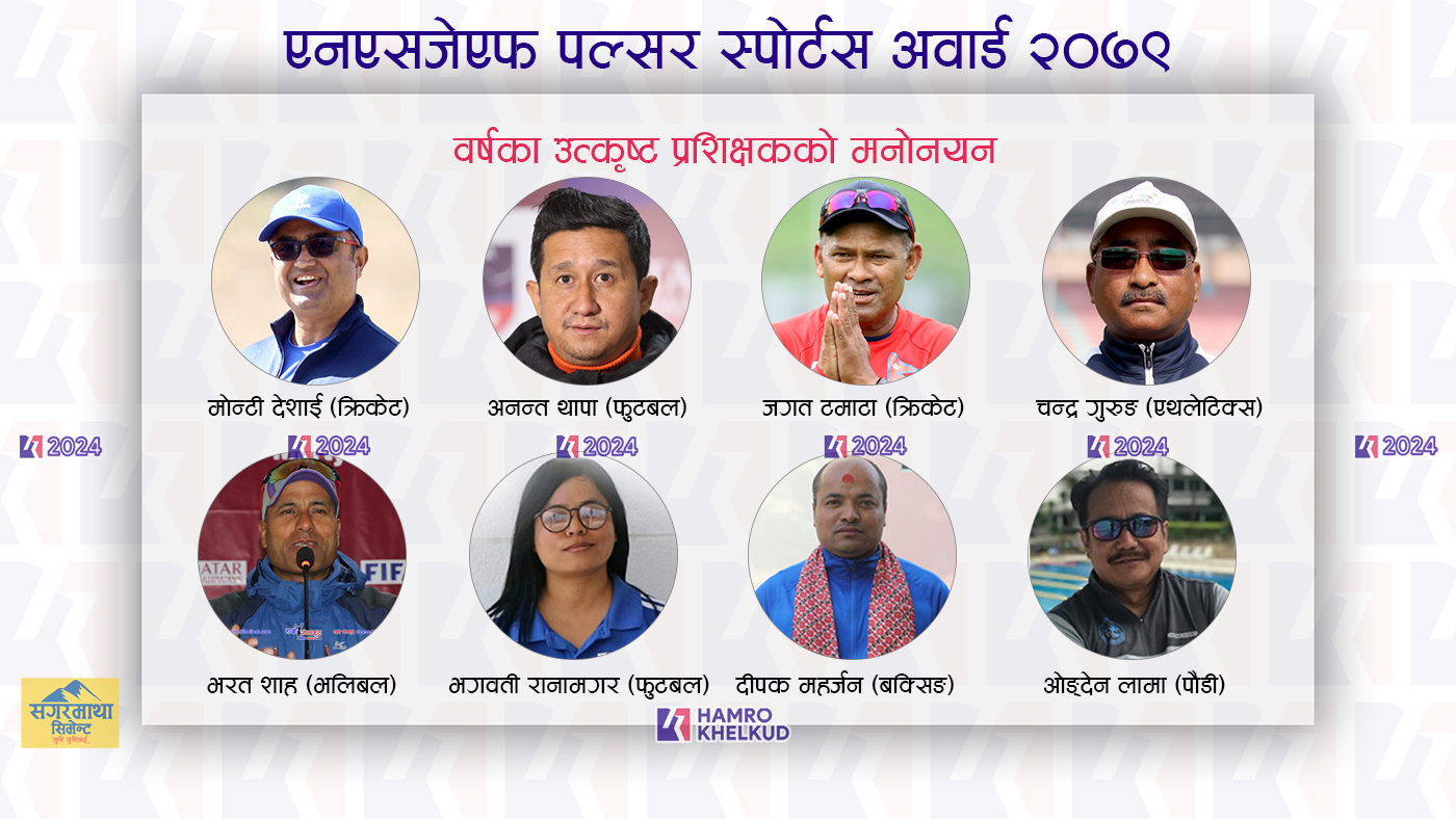 काठमाडौं (हाम्रो खेलकुद) – अर्को साता आयोजना हुने एनएसजेएफ पल्सर स्पोर्टस अवार्ड २०७९ को वर्ष प्रशिक्षककोे मनोनयन सार्वजनिक भएको छ ।