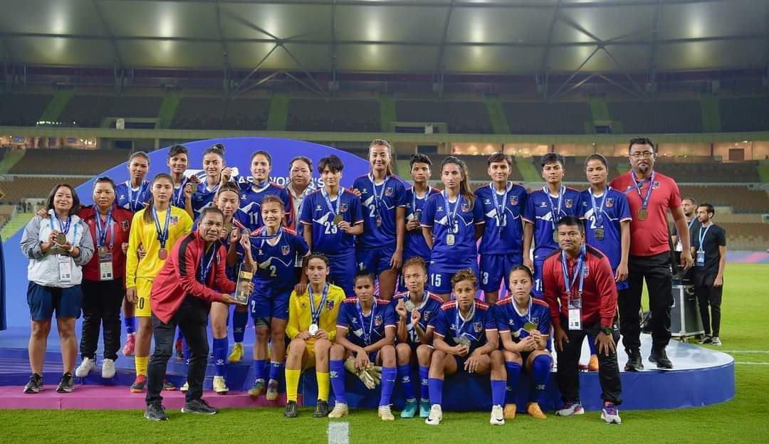 काठमाडौं (हाम्रो खेलकुद) – वाफ च्याम्पियनसिपको फाइनल खेलेको नेपाली राष्ट्रिय महिला फुटबल टोलीका खेलाडीलाई जनही ५१ हजार रुपैयाँ दिने घोषणा गरेको छ।