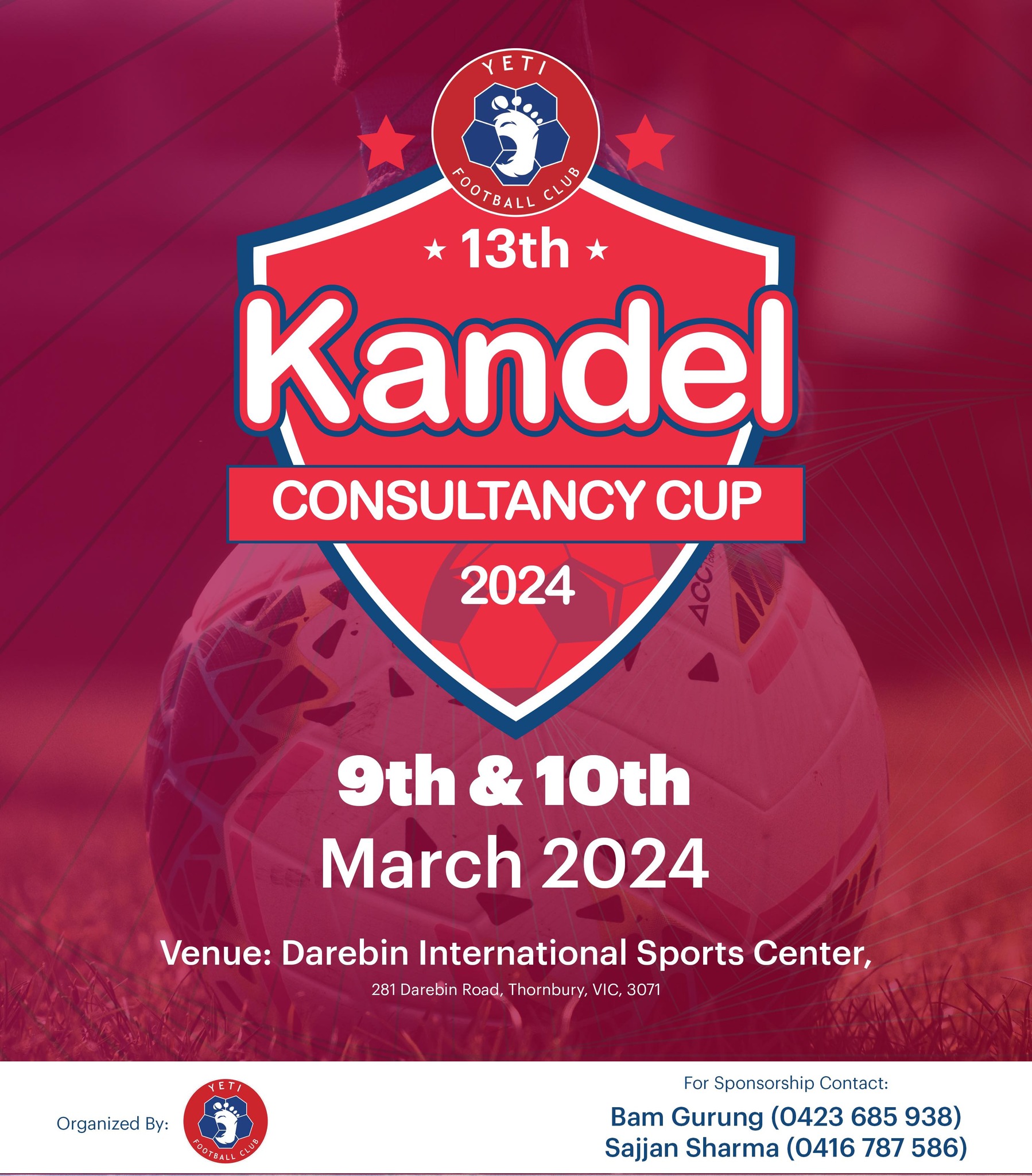 मेलबर्न – अष्ट्रेलियाको मेलबर्नमा आयोजना हुन लागेको १३औं संस्करणको कँडेल कन्सल्टेन्सी कपको सम्पूर्ण तयारी पूरा भएको आयोजक यति एफसीले जनाएको छ ।