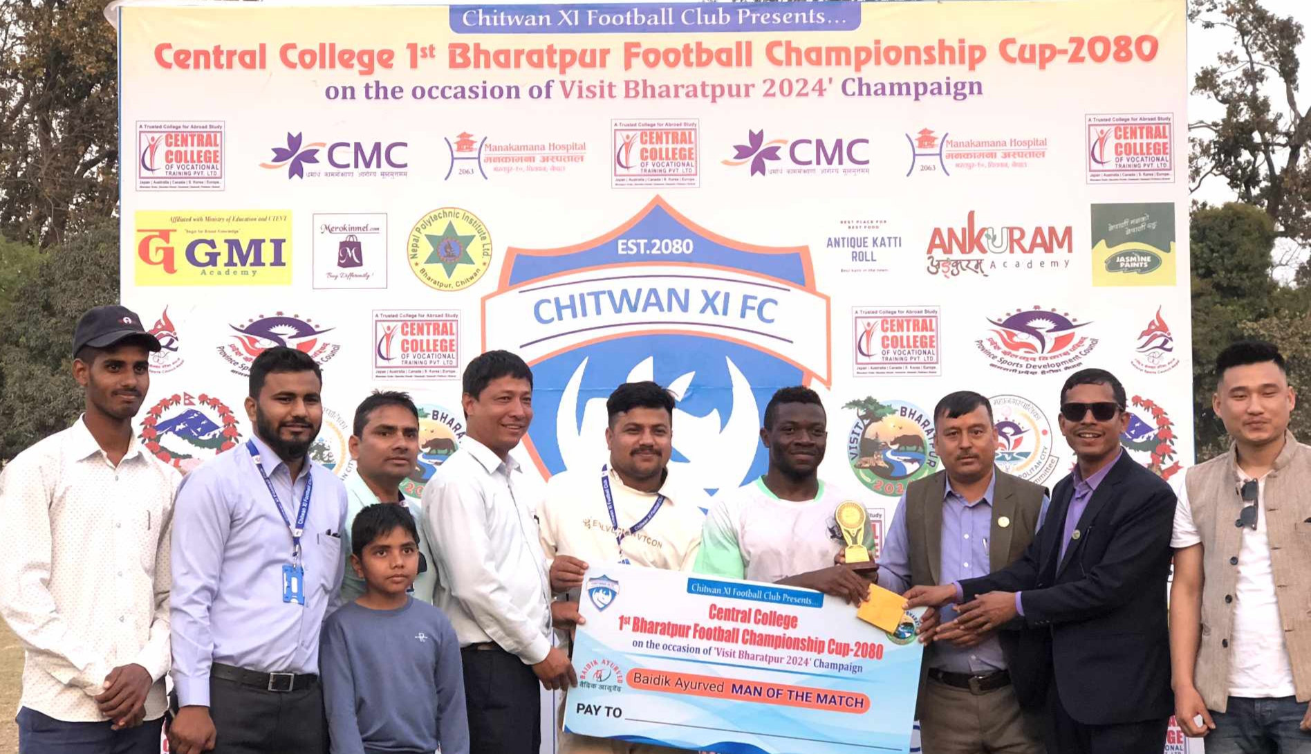 चितवन ११ फुटबल क्लबको आयोजनामा जारी प्रतियोगिता चैत १० गतेसम्म चल्नेछ । प्रतियोगिताको विजेताले ३ लाख ३ हजार र दोस्रोले १ लाख ५० हजार रुपैयाँ प्राप्त गर्नेछ । भरतपुर भ्रमण वर्ष २०२४ को अवसरमा प्रतियोगिता आयोजना गरिएको हो ।