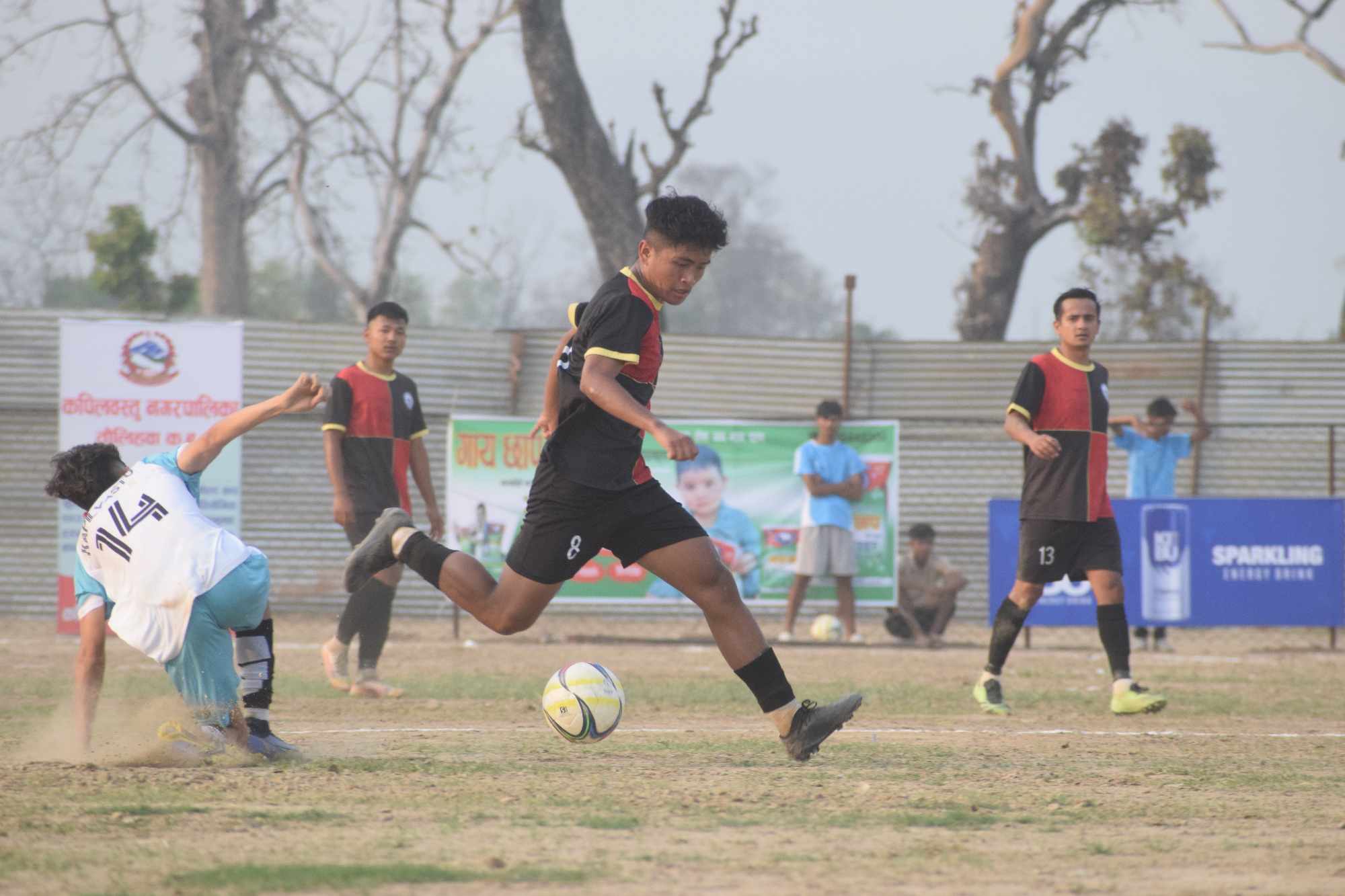 कपिलवस्तुको बुद्ध मैदानमा शनिबार सुरु भएको प्रतियोगिताको उद्घाटन खेलमा थ्री स्टारले कपिलवस्तु ११ लाई ३–० ले हराउँदै अन्तिम चारको यात्रा तय गरेको हो । थ्री स्टारका निरज चौधरीले २ र दीपेश घलेले अर्को गोल गरेका थिए ।