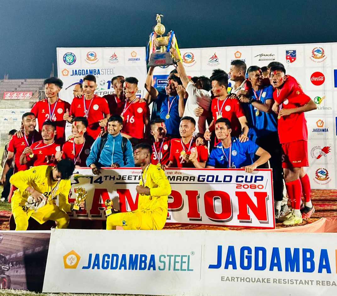 नेपाल पुलिस क्लबले जगदम्बा स्टिल १४ औं जीतपुरसिमरा गोल्डकप फुटबल प्रतियोगिताको उपाधि जितेको छ । सिमरा रंगशालामा सोमबार भएको प्रतिस्पर्धात्मक फाइनल खेलमा मच्छिन्द्र क्लबलाई टाइब्रेकरमा ४–३ ले हराउँदै पुलिसले वर्षको पहिलो उपाधि जितेको छ ।