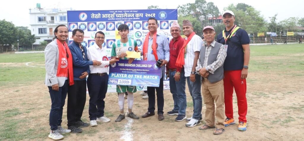 खेलको प्लेयर अफ द म्याच आयोजजका पुजन थापा भए र उनले ३ हजार रुपैयाँ पुरस्कार पाए । प्रतियोगितामा नेपाल र भारतका ८ टोलीको सहभागिता रहेको प्रतियोगिता संयोजक मनेष दाहालले बताए ।