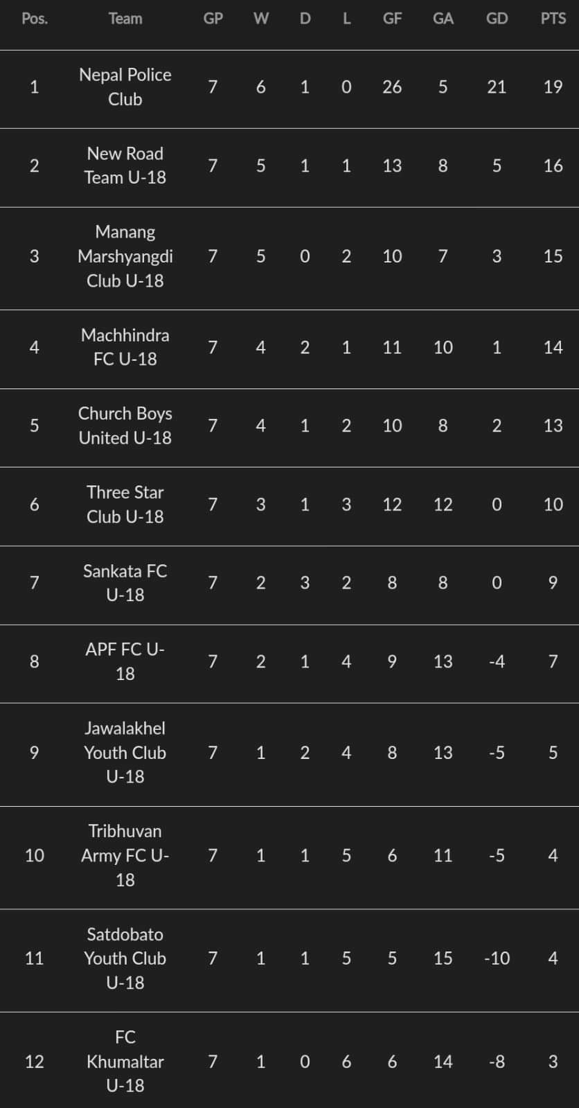 यो नतिजासंगै चर्च ब्वाइज ७ खेलबाट १३ अंक जोड्दै छ पाँचौ स्थानमा छ । खुमलटारको समान खेलमा मात्र ३ अंकसहित अंक तालिकाको पुछारमा छ ।