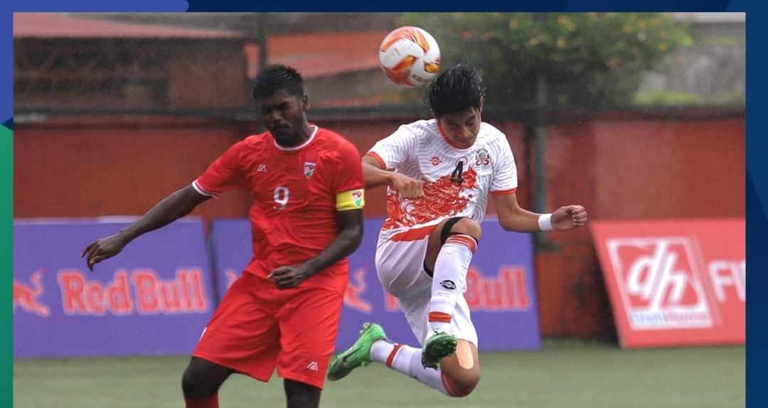 दोस्रो हाफको अधिकांश समय १० खेलाडीमा सीमित भएको भुटानले माल्दिभ्सलाई बुधवारको समूह बीको खेलमा २-१ ले पराजित गरेको हो । सातदोबाटोस्थित एन्फा कम्प्लेक्समा भारी वर्षाका बीच खेलको २१ मिनेटमा दोर्जीको गोलबाट भुटानले अग्रता लिएको थियो ।