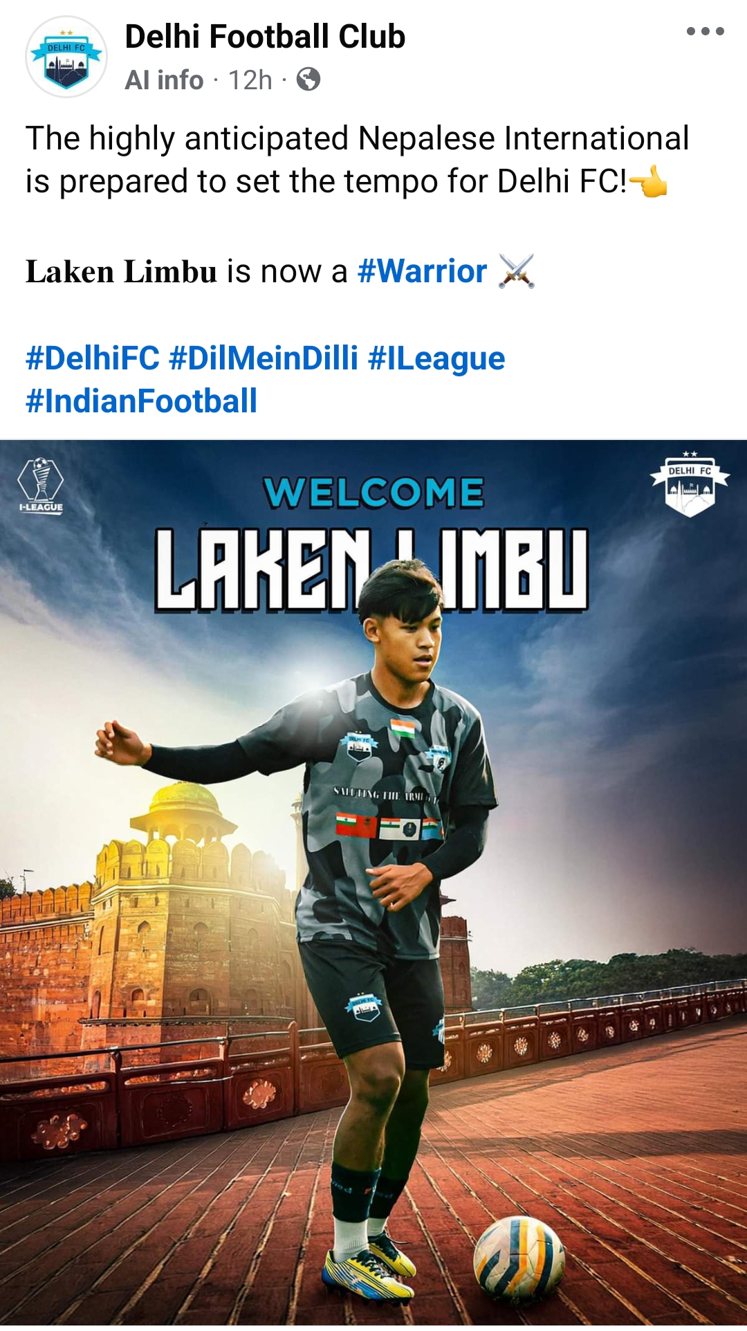 काठमाडौं (हाम्रो खेलकुद)- राष्ट्रिय फुटबल टोलीका मिडफिल्डर लाकेन लिम्बु आई ( इन्डियन ) लिग टोली दिल्ली एफसीमा आबद्ध भएका छन् ।