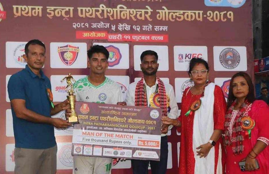 पथरी ११ एफसीले आयोजना गरेको गोल्डकपमा आइतवार दोस्रो क्वार्टर फाइनलमा धरान सिटी एफसीलाई ४–० ले हराउँदै झापा ११ अन्तिम चारमा पुगेको हो ।