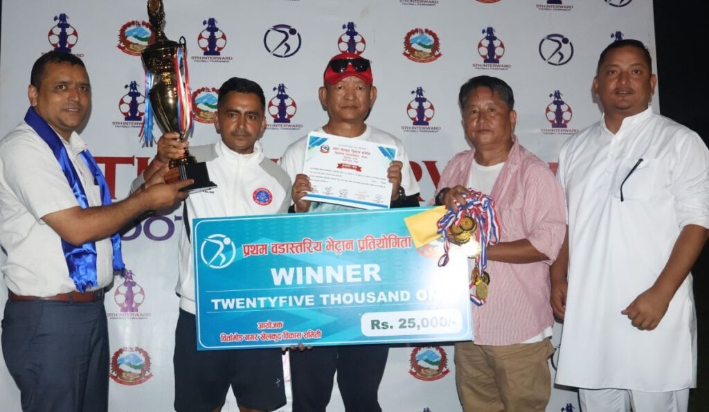 यसैबीच, आजै सम्पन्न भेट्रान प्रतियोगिताको उपाधि वडा नम्बर १० ले जितेको छ । वडा नं. ५ लाई ५–० गोलअन्तरले हराउँदै वडा नम्बर १० च्याम्पियन बनेको हो ।उपाधिसँगै वडा नम्बर १० ले २५ हजार, ट्रफी, मेडल र प्रमाणपत्र पायो भने उपविजेता बनेको वडा नम्बर ५ ले १५ हजार रुपैयाँ, ट्रफी, मेडल र प्रमाणपत्र प्राप्त गर्यो ।