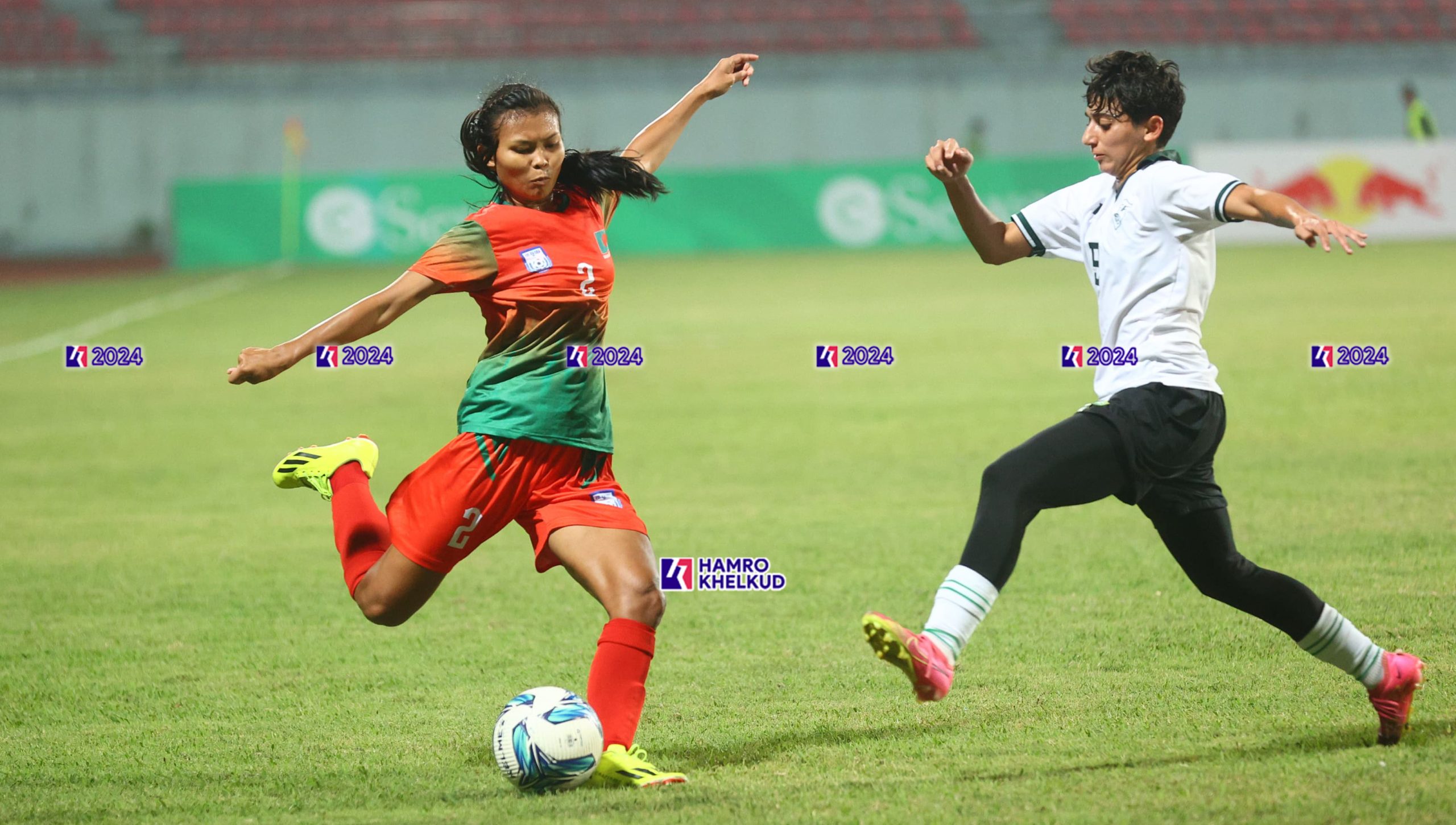 ४२ औं मिनेटमा बंगलादेशकी ऋतुले पेनाल्टी क्षेत्र बाहिरबाट गरेको प्रहारमा गोलरक्षक निशा अशरफ बिट भएपनि क्रसबार बाधक बन्द बंगलादेश बराबरी गर्नबाट बन्चित भयो ।