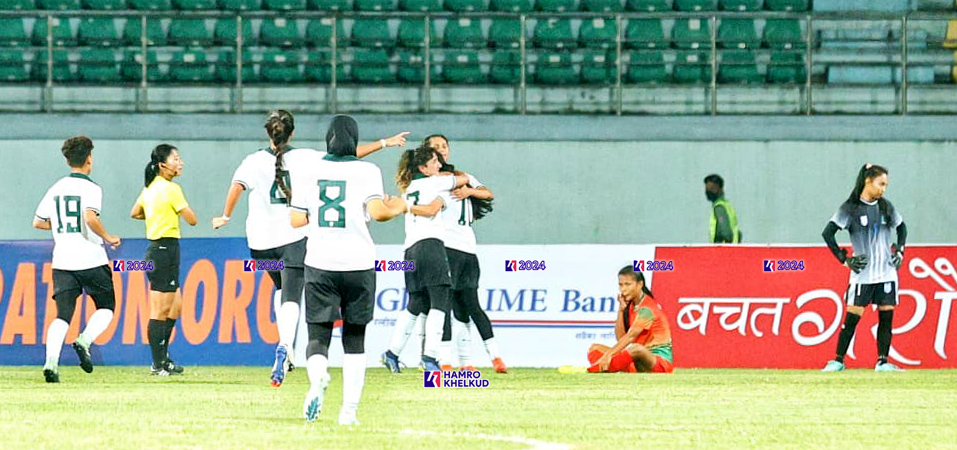 काठमाडौं (हाम्रो खेलकुद) – साफ महिला च्याम्पियनसिप २०२४ अन्तर्गत साविक विजेता बंगलादेश पाकिस्तानसँग हारबाट जोगिएको छ । समूह ए को दोस्रो खेलमा पाकिस्तानले दोस्रो हाफको इन्ज्युरी समयमा गोल खाँदै १-१ को बराबरी खेलेको हो ।