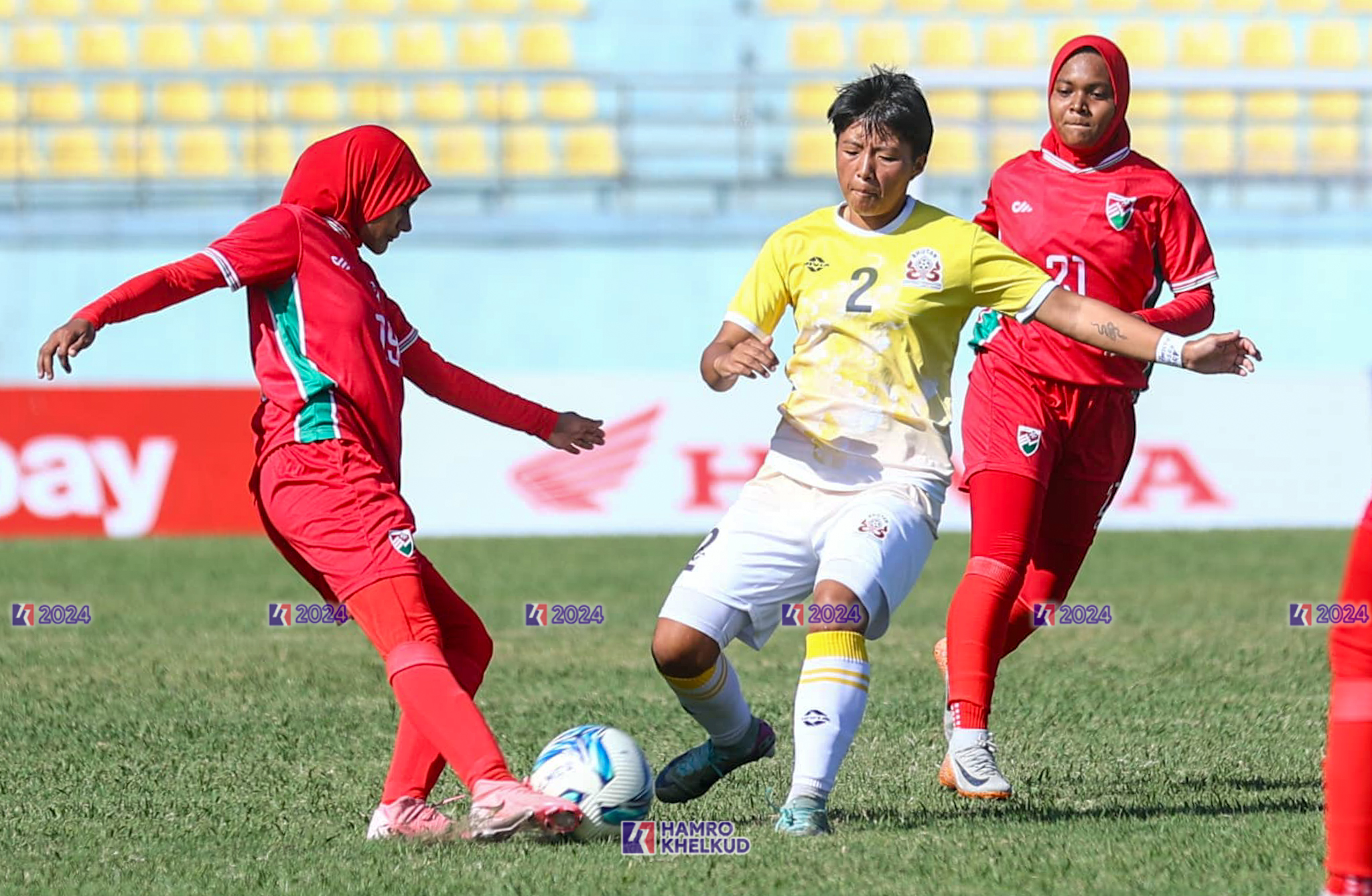 खेलको तेस्रो मिनेटमै भुटानले पेनाल्टी पाएको थियो । सोनाम छोदेनको पेनाल्टी प्रहार गोलरक्षक अमिनाथ लिजाले बचाइन् । तर त्यसको २ मिनेटमै सोनामले गोल गरिन् । लगत्तै पेमा छोदेनले क्लियर हुन नसकेको बलमा अर्को गोल गरिन् ।