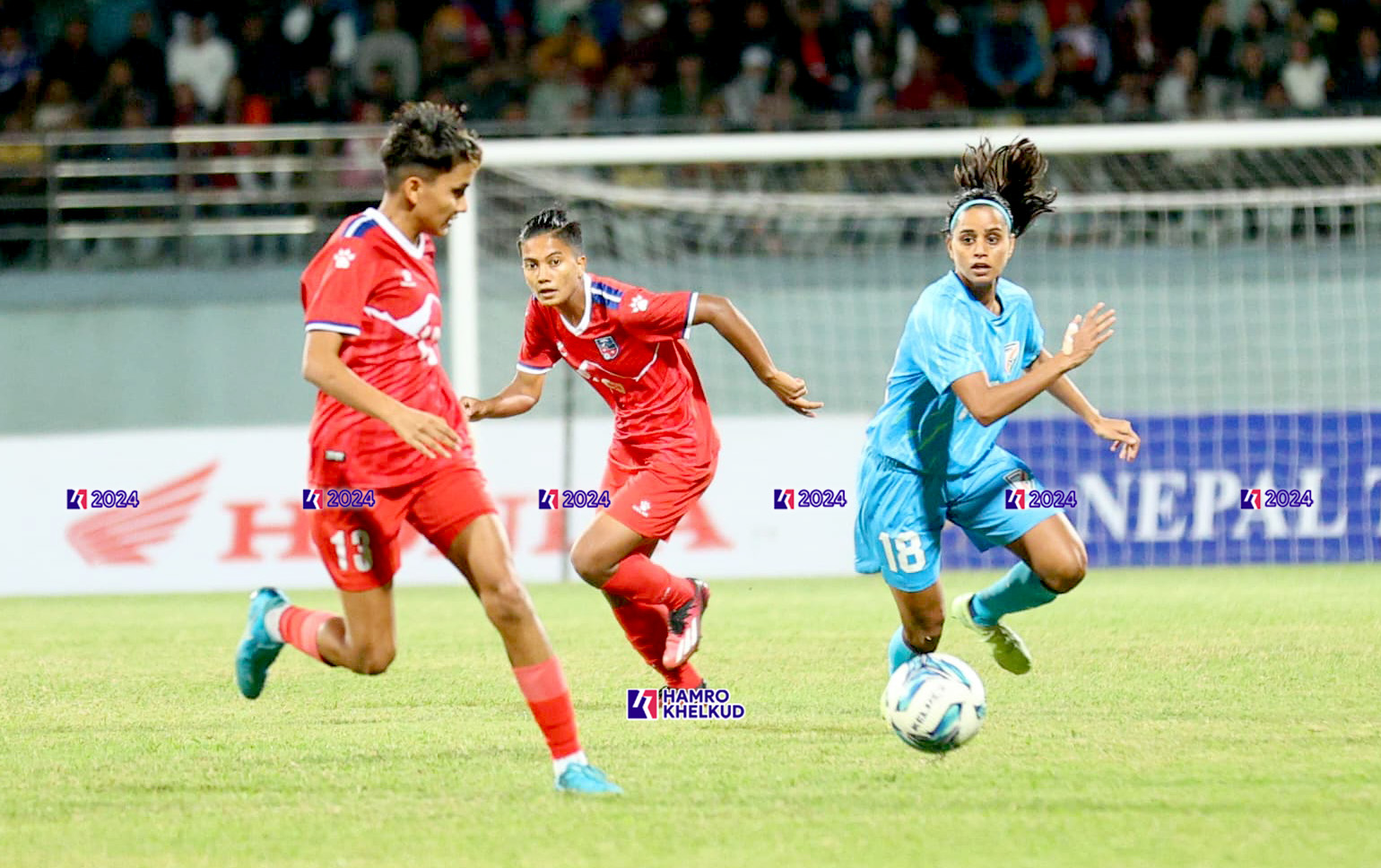 २३ औं मिनेटमा भारतकी मनिषाले बायाँ विंगबाट विमला विकलाई बिट गर्दै पेनाल्टी क्षेत्र भित्रबाट गरेको लगातार प्रयासले डिफेन्स लाइन काट्न सकेन ।