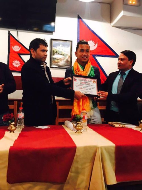 काठमाडौं (हाम्रो खेलकुद)– राष्ट्रिय टोलीका युवा स्ट्राइकर अन्जन विष्ट स्पेनको बार्सिलोनामा सम्मानित भएका छन् । स्पेनको मार्बेला युनाइटेड एफसीमा प्रशिक्षण लिइरहेका उनलाई नेपाली समुदायको जनप्रगतिशिल मञ्च, स्पेनले आइतबार सम्मान गरेको हो । फुटबलमार्फत देशलाई अन्र्राष्ट्रिय क्षेत्रमा चिनाउन योगदान गरेको भन्दै अन्जनलाई मञ्चले सम्मान गरेको थियो ।
