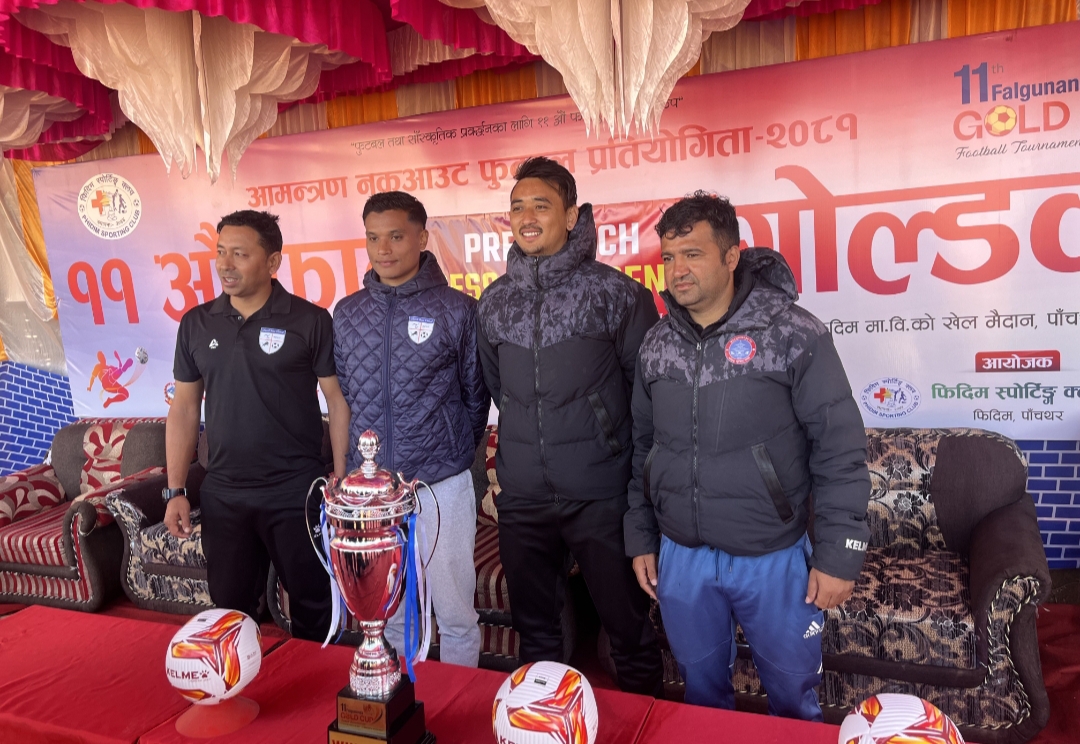 फिदिममा जारी ११ औं फाल्गुनन्द गोल्डकप फुटबल प्रतियोगिताको उपाधिका सोमवार ए डिभिजनका दुई टोली चर्च ब्वाइज युनाइटेड क्लब र मच्छिन्द्र फुटबल बिच हुँदैछ।