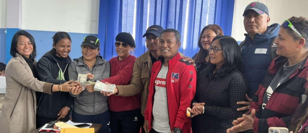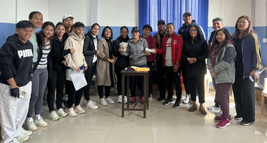 समाजले राष्ट्रिय फुटबल टोलीका पूर्व प्रशिक्षक बालगोपाल महर्जन मार्फत सोमवार टोलीका खेलाडीलाई एकमुष्ट २ लाख २२ हजार ३ सय २२ रुपैयाँ हस्तान्तरण गरेको थियो। टोलीको तर्फबाट रेनुका नगरकोटेले रकम ग्रहण गरेकी थिइन् ।