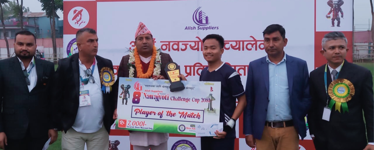 खेलको प्लेयर अफ द म्याच नव प्रगतिबाट २ गोल गर्ने ओसन भए र उनले ७ हजार रुपैयाँ पाए ।