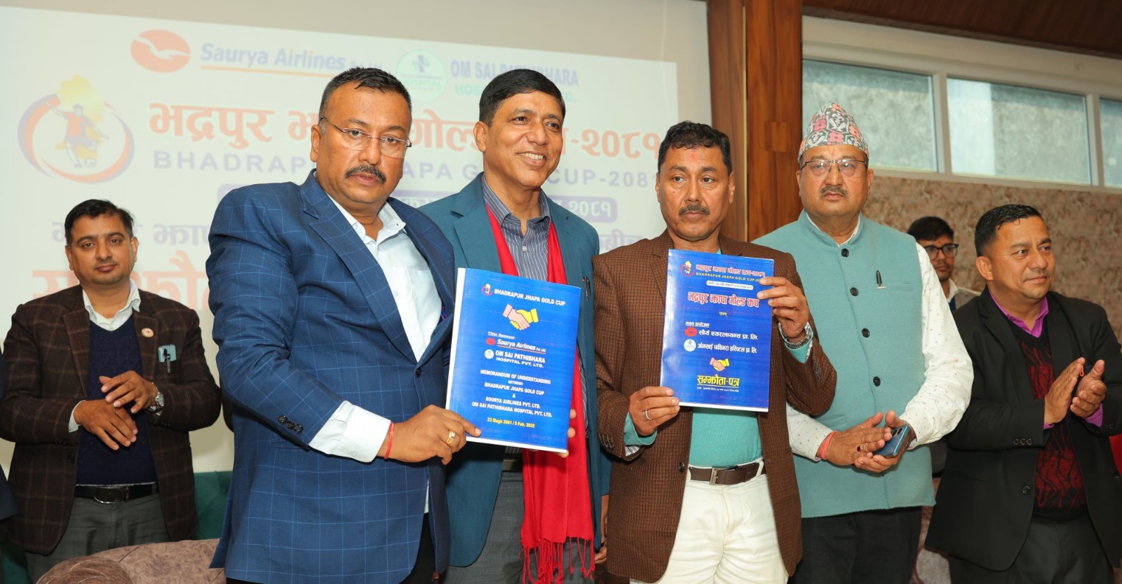 समझौतापछि अब ‘सौर्य एअरलाइन्स तथा ओम साई पाथिभरा हस्पिटल भद्रपुर झापा गोल्डकप’ को रुपमा प्रतियोगिता सञ्चालन हुनेछ ।