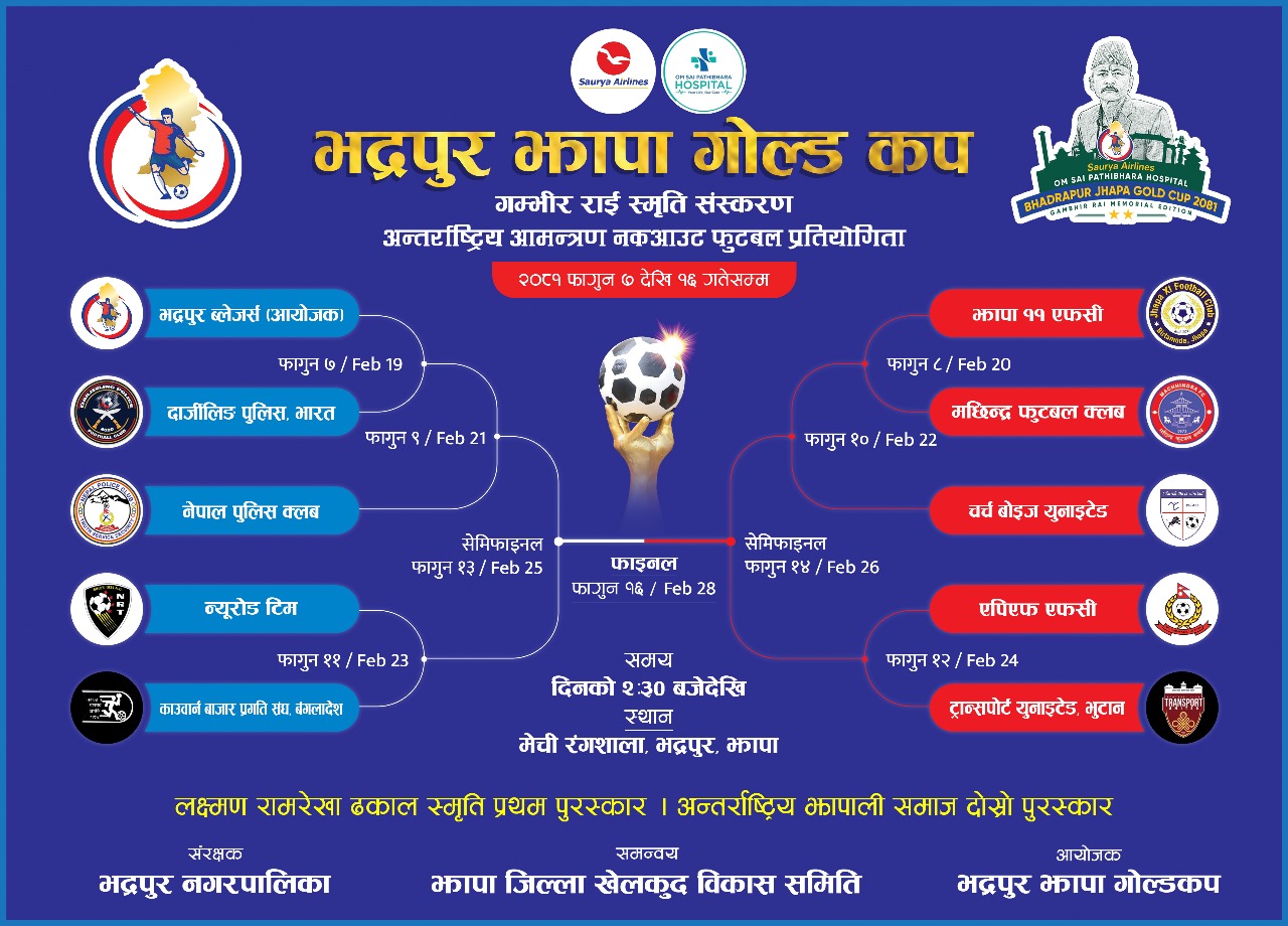 सौर्य एअर ओम साई पाथिभरा दोस्रो भद्रपुर झापा गोल्डकप २०८१ गम्भीर राई स्मृति संस्करणको खेल तालिका सार्वजनिक भएको छ ।