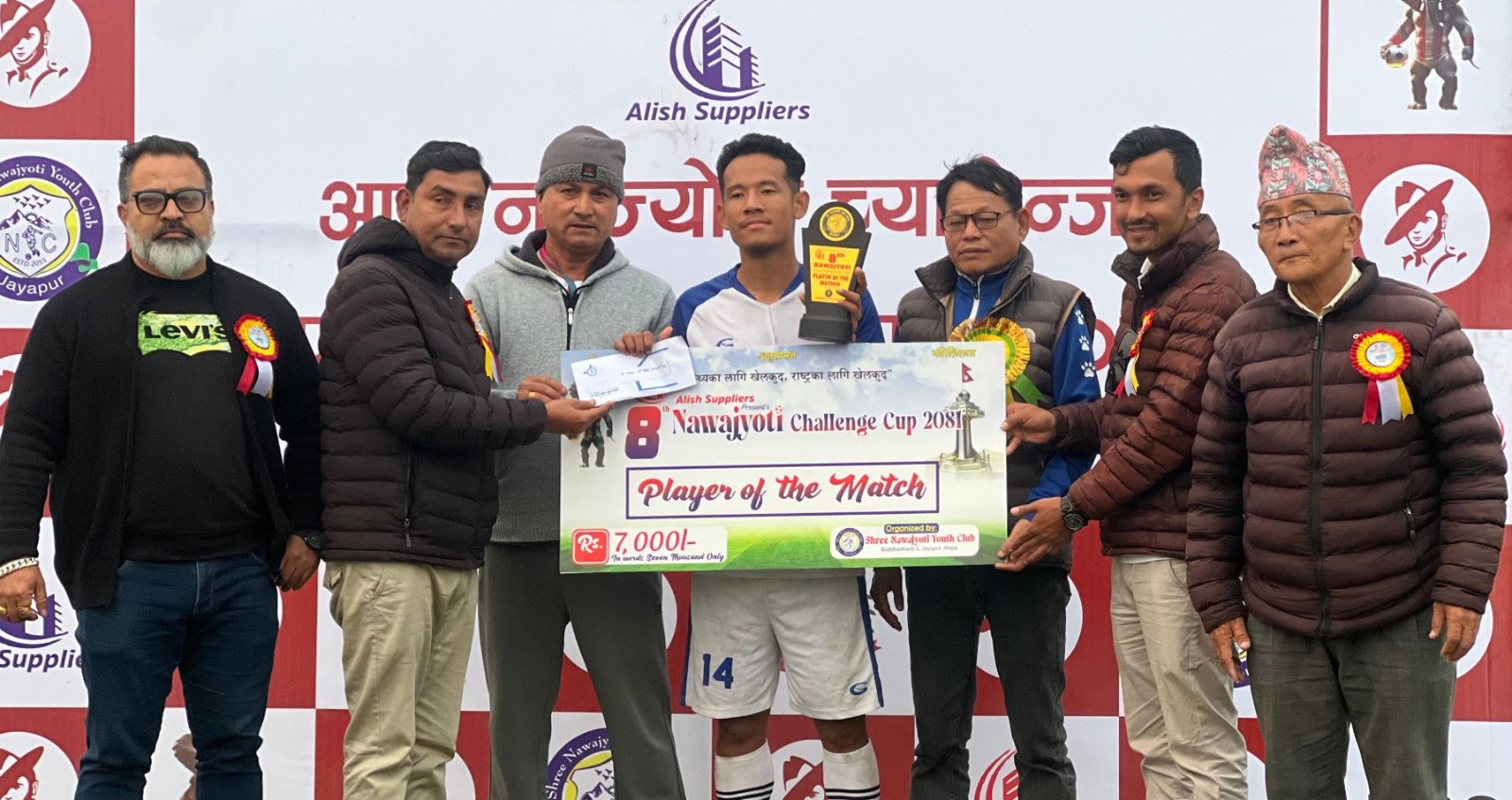 प्रतियोगिताअन्तर्गत भोलि अन्तिम सेमिफाइनल खेल आयोजक नव ज्योति युथ क्लब र काठमाडौँको प्लानिङ ब्वाइजबीच हुने क्लबका उपाध्यक्ष भरत खतिवडाले जानकारी दिए ।