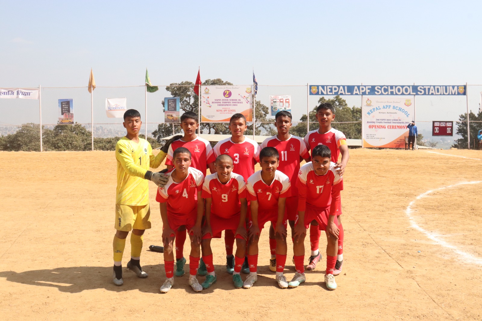 प्रतियोगितामा शुक्रवार आयोजक कीर्तिपुरको नेपाल एपिएफ स्कुल ‘बी’ले साँगाको नेपाल पुलिस स्कुल तथा आयोजक ‘ए’ र कोहलपुरको नेपाल एपिएफ स्कुलबिच क्वाटरफाइनलमा खेल्नेछन्।