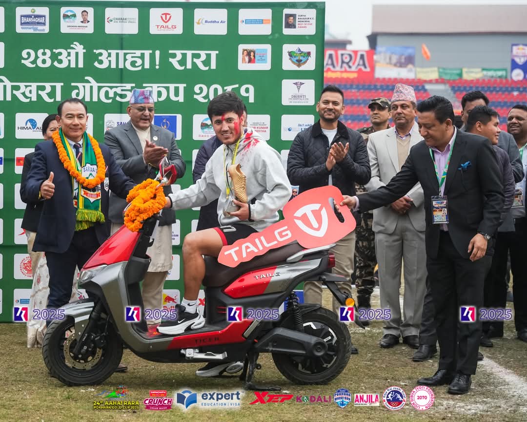 उनलाई टेल्जी इलेक्ट्रिक स्कुटर प्रदान गरिएको छ। उनले ३ खेलमा ३ गोल गरे। फाइनलमा पनि उनले एक गोल गरेका थिए। उनी नै सर्वाधिक गोल कर्ताको अवार्ड जित्न पनि सफल रहे। सर्वाधिक गोल कर्ताको लागि उनलाई २५ हजार प्रदान गरियो।