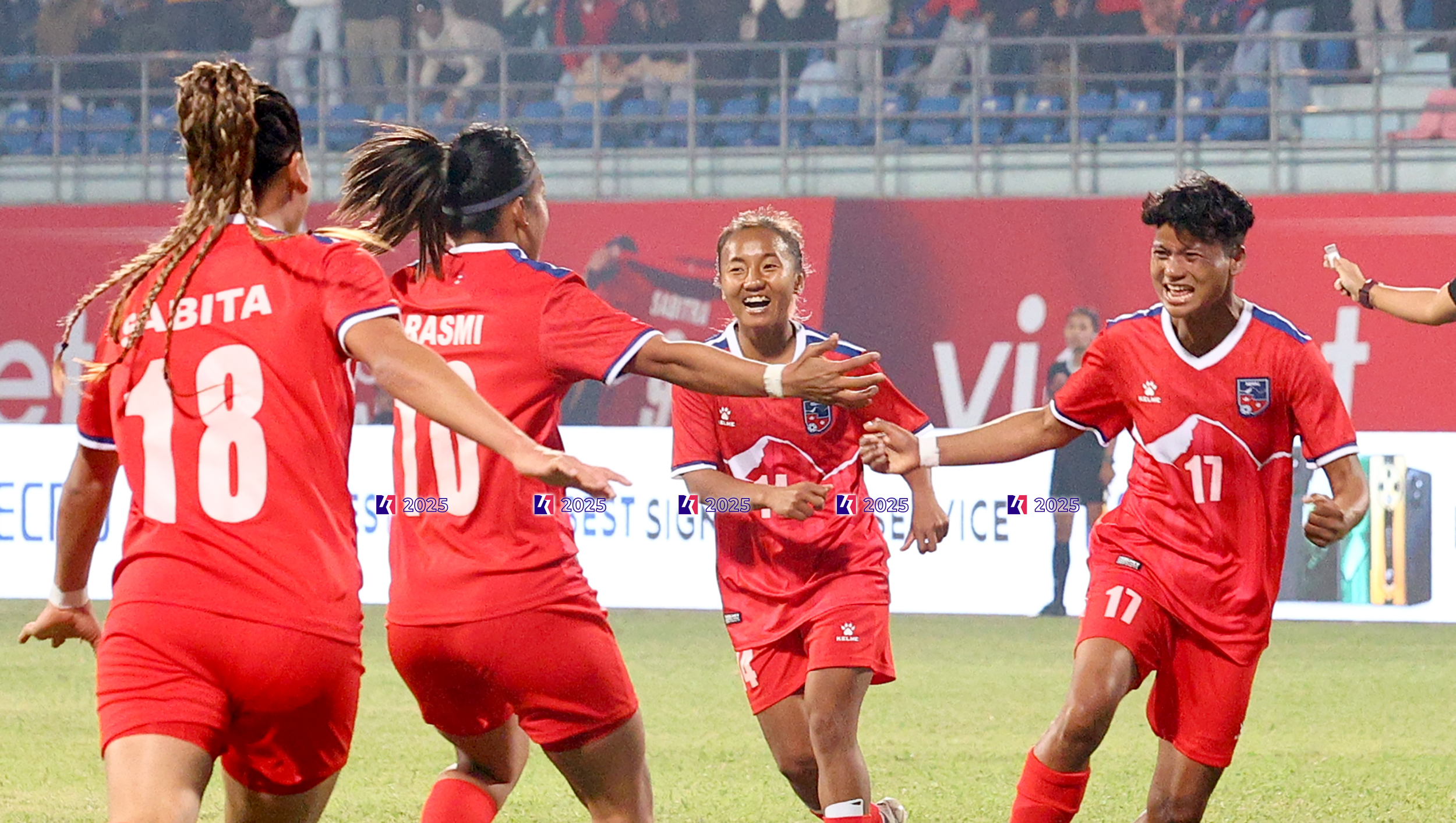 पहिलो हाफमा नेपालले १-० को अग्रता बनाएको छ। विमला चौधरीले नेपालको लागि गोल गरिन्।