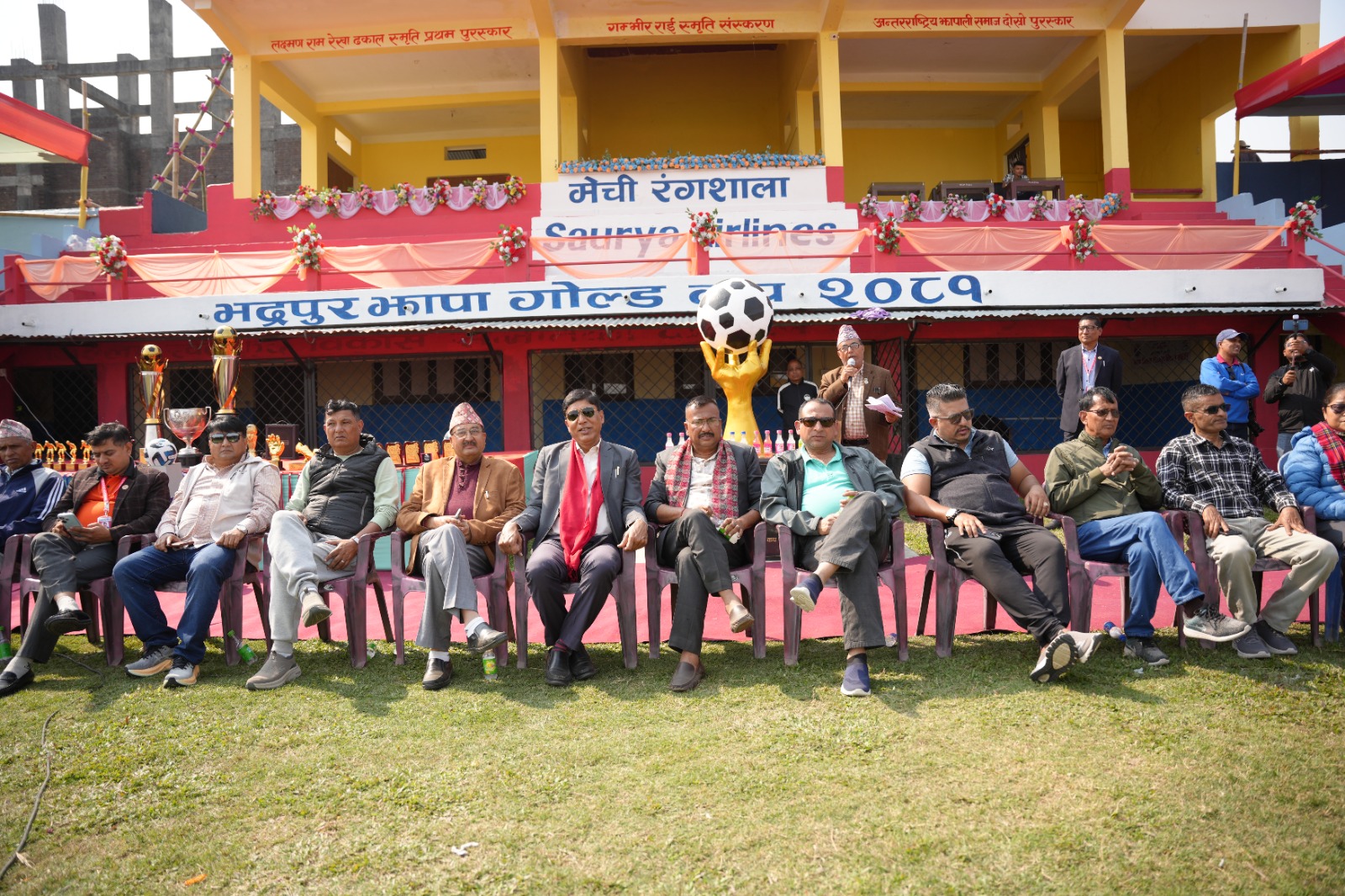 सौर्य एअरलाइन्स ओम साई पाथिभरा हस्पिटल भद्रपुर झापा गोल्डकप गम्भीर राई स्मृति संस्करण अन्तर्राष्ट्रिय आमन्त्रण नकआउट फुटबल प्रतियोगिताको तयारी पूरा भएको छ ।