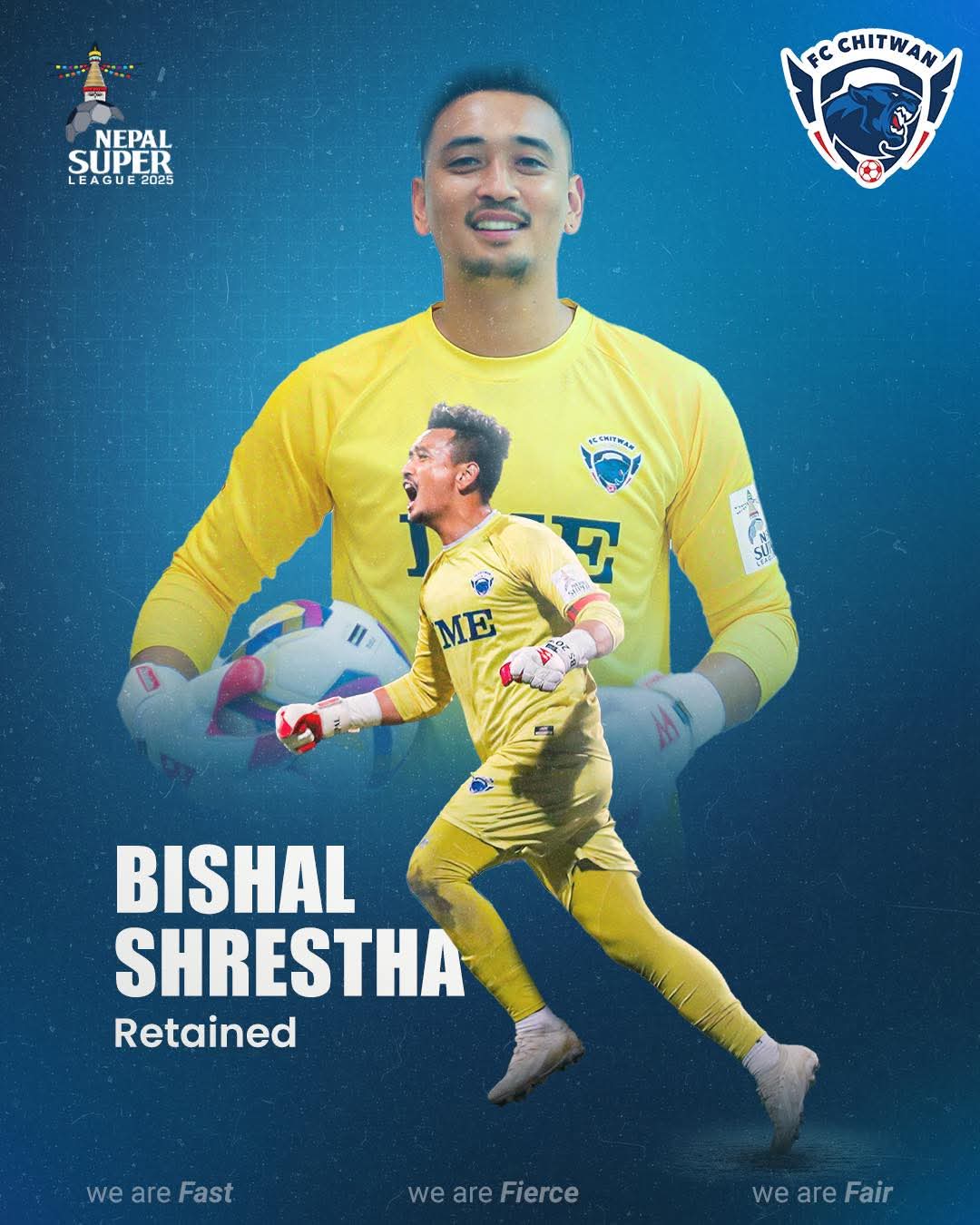 काठमाडौं (हाम्रो खेलकुद )- एफसी चितवनले गोलकिपर विशाल श्रेष्ठलाई नेपाल सुपर लिग (एनएसएल) को तेस्रो संस्करणका लागि रिटेन गरेको छ ।
