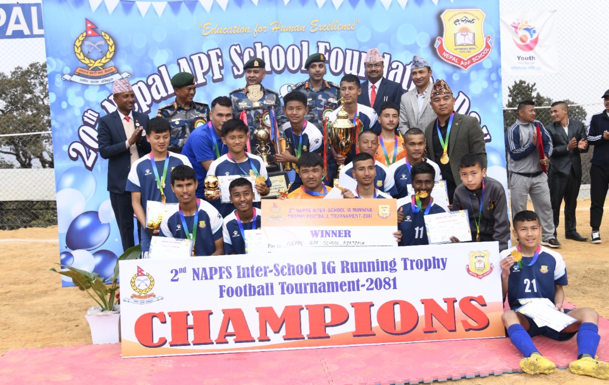सल्लाघारीको सैनिक आवासीय महाविद्यालयलाई बिहीवार ५-० ले हराउँदै एपिएफ च्याम्पियन बनेको हो ।