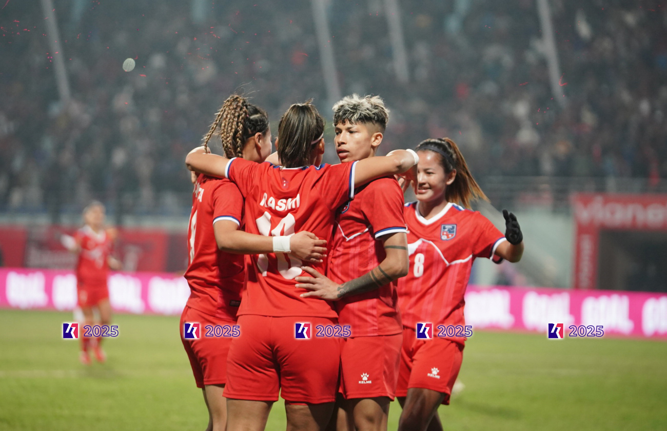 तर ४१ औं मिनेटमा प्रीति राईको उत्कृष्ट पासमा साम्बाले डि बक्स भित्रबाट आकर्षक गोल गरिन्। यो सँगै पहिलो हाफ २-२ को बराबरीमा सकियो।