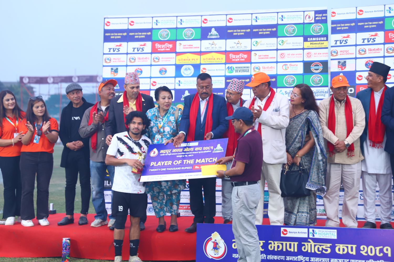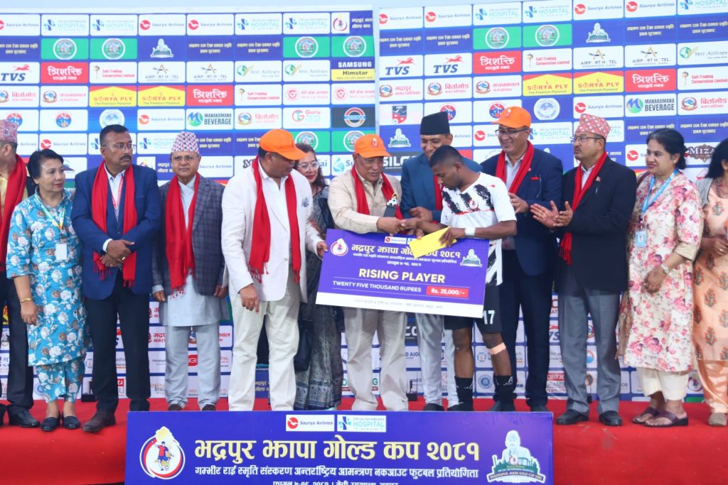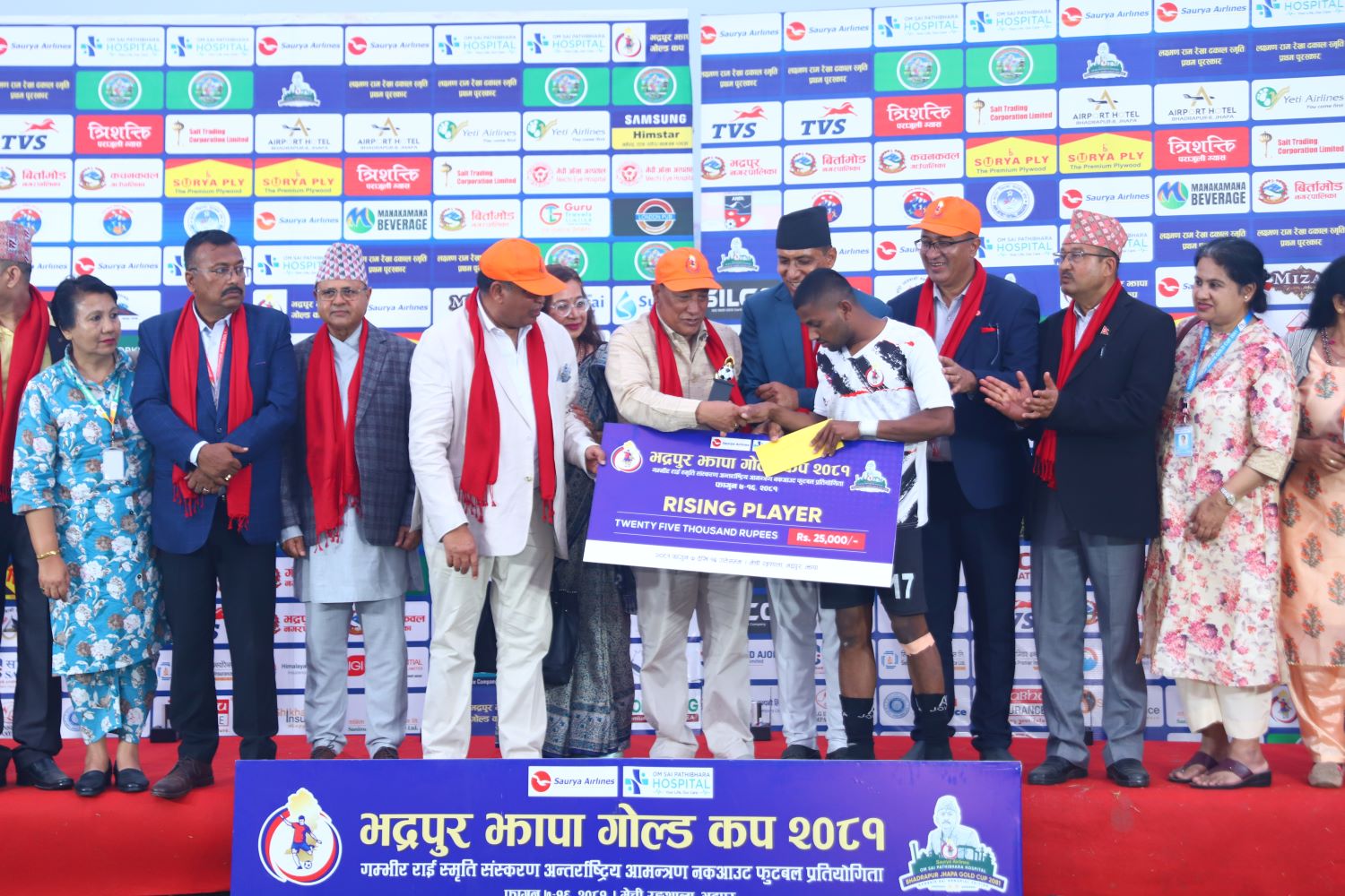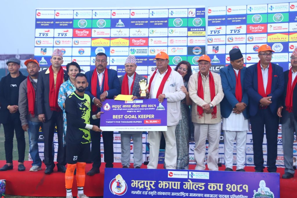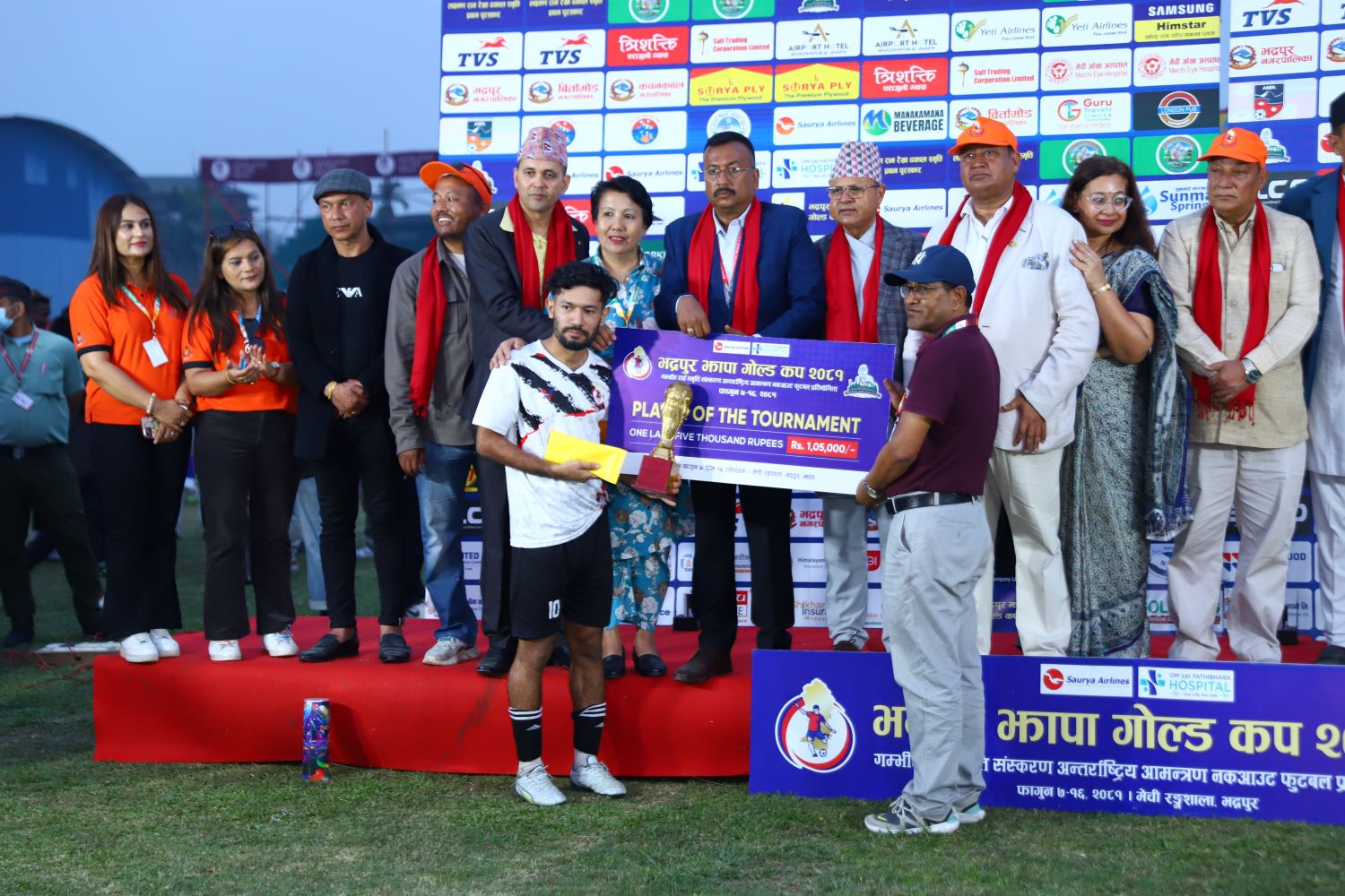 भद्रपुरका राजेश शाह उदयीमान खेलाडी, भद्रपुरका टिकेन्द्र थापा उत्कृष्ट गोलकिपर र बेस्ट कोच भद्रपुरका सचिन्द्र धिमाल उत्कृष्टहरु प्रशिक्षक घोषित भए । भद्रपुरका सत्यम शर्मा उच्च गोलकर्ता रहे । उनीहरुले जनही २५ हजार पुरस्कार रुपैयाँ र ट्रफी पाए ।