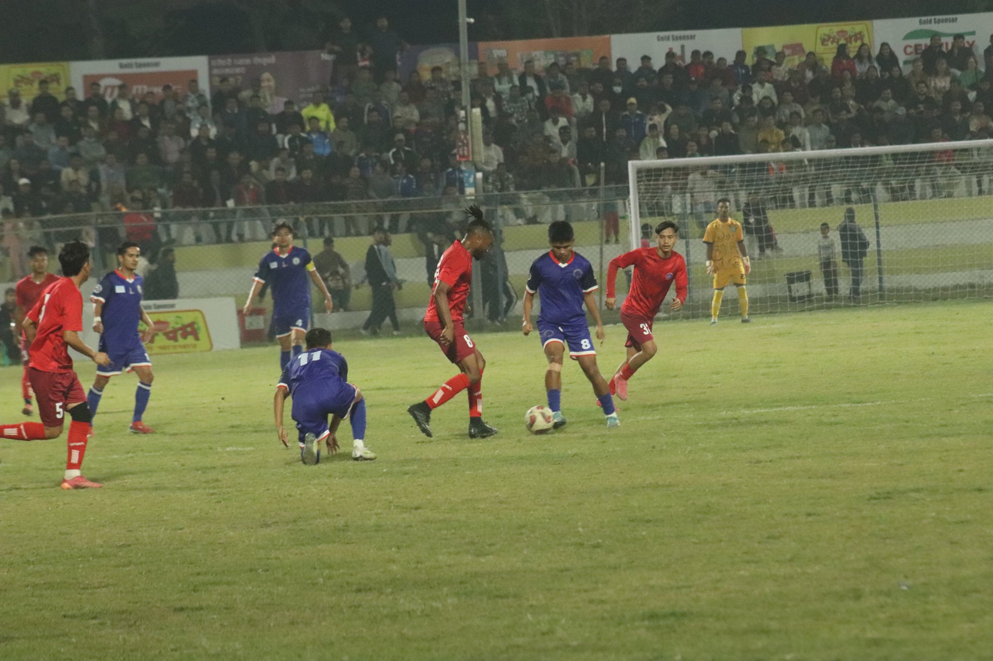 विराटनगरको सहिद रंगशालामा शुक्रवार तेस्रो क्वाटरफाइननमा साविक विजेता मछिन्द्र एफसीलाई २-१ गोलले हराउँदै थ्री स्टार क्लब अन्तिम चारमा पुगेको छ।