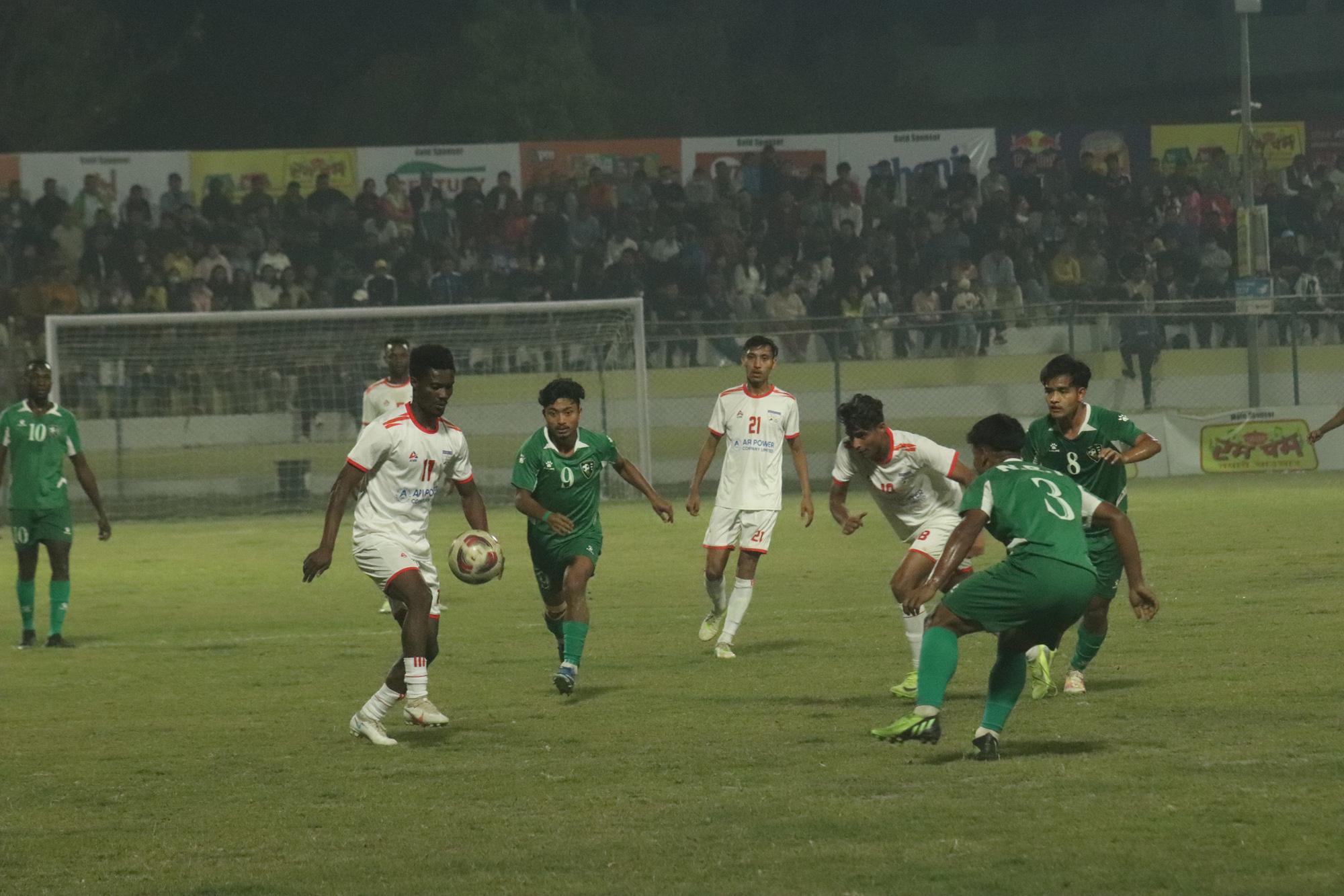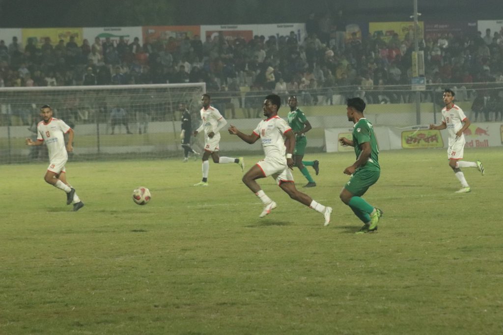 २४ औं मिनेटमा एनआरटीका विदेशी खेलाडी अर्मनले गरेको प्रहारमा टिकेन्द्र बाधक बने । ३३ औ मिनेटमा फोदेले वान भर्सेस वानको सुन्दर गोल गर्ने अवसर खेर फाले । उनको प्रहार बार माथिबाट बाहिरियो ।