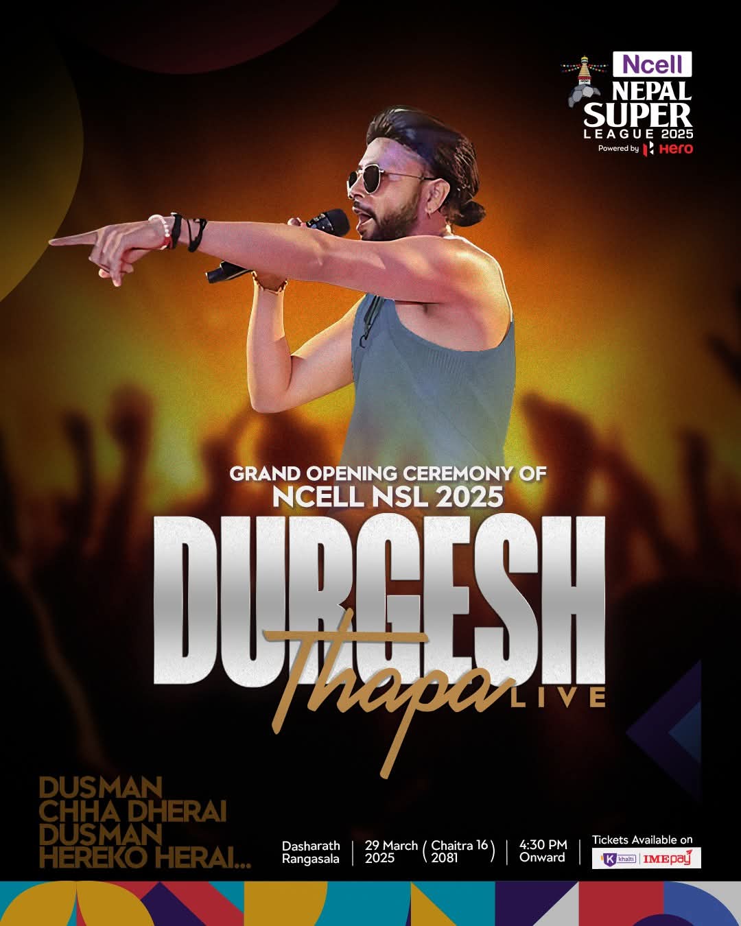 नेपाल सुपर लिग (एनएसएल) को तेस्रो संस्करणको शनिवार हुने उद्घाटनमा आयोजक नेपाल स्पोर्टस एण्ड इभेन्ट्स म्यानेजमेन्टले थापालाई मुख्य पर्फमरको रुपमा प्रस्तुत गर्ने सामाजिक सन्जालमार्फत जानकारी दिएको छ।