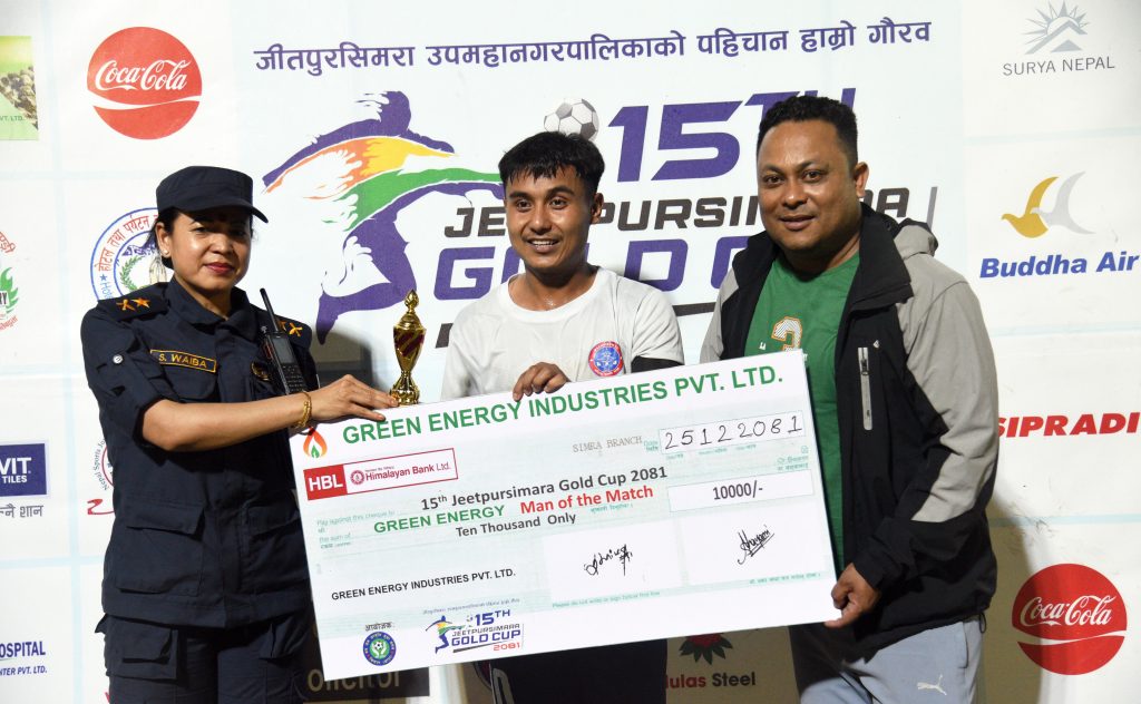 मच्छिन्द्रका रेजिन सुब्बा खेलको ग्रीन इनर्जी म्यान अफ दि म्याच घोषित भए । उनलाई इलाका प्रहरी कार्यालय सिमराकी प्रहरी नायब उपरिक्षक शुभद्रा लामा र ग्रीन इनर्जीका शैलेस शाहले १० हजार रुपैयाँ र ट्रफि प्रदान गरे ।