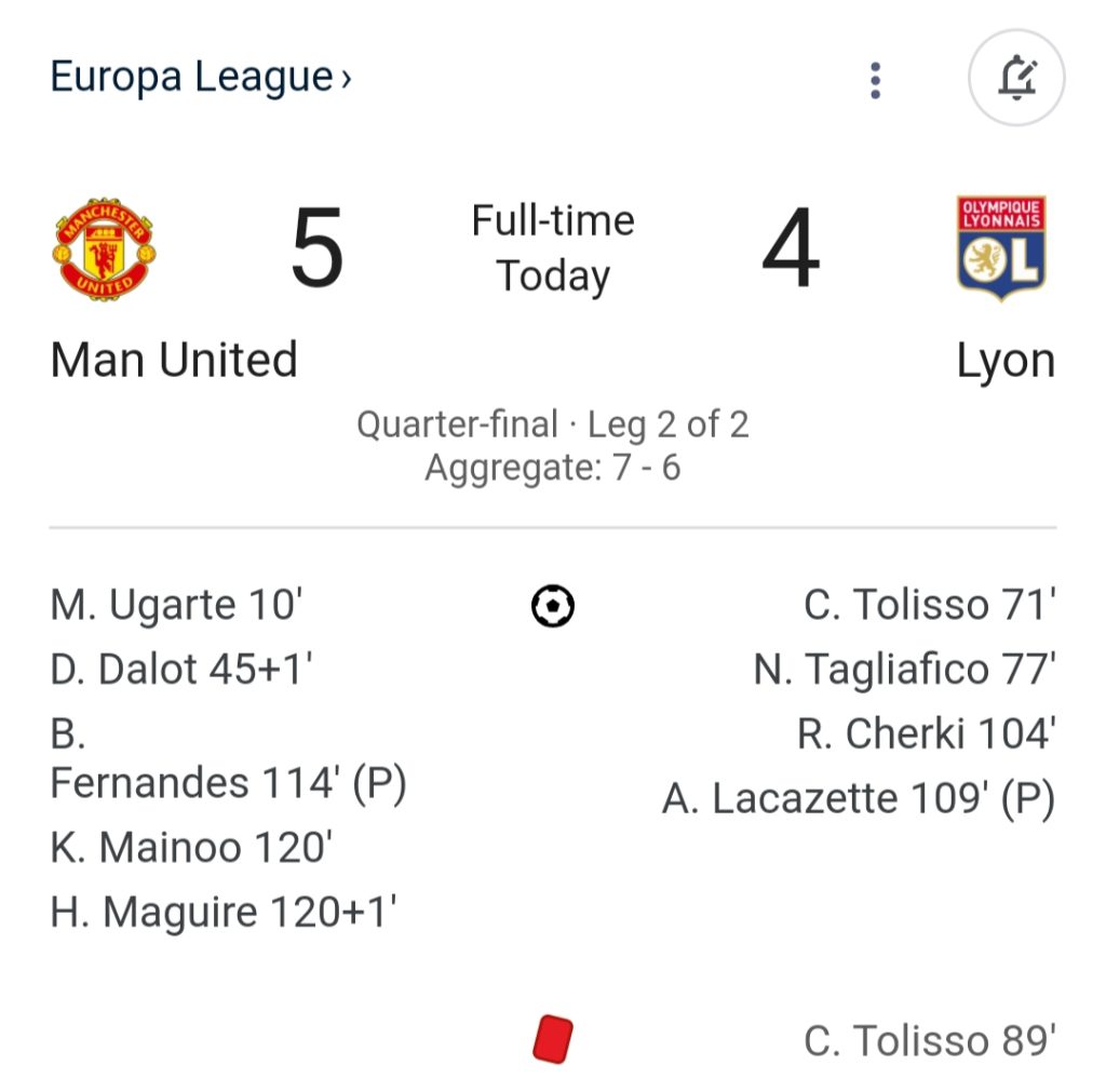 क्वाटरफाइनलको दोस्रो लेगमा बिहीवार लियोनलाई ५-४ ले हराएपछि समग्रमा ७-६ को अग्रतासहित युनाइटेड अन्तिम चारमा पुगेको हो। पहिलो लेगमा २-२ को बराबरी भएको थियो।