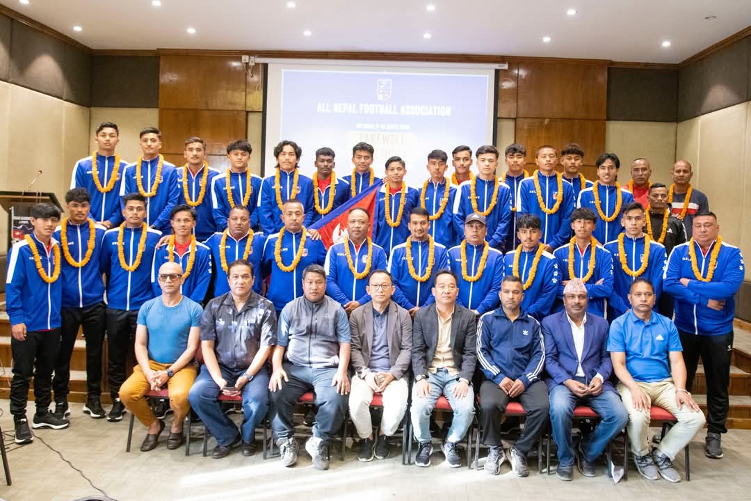 अखिल नेपाल फुटबल संघ (एन्फा) अध्यक्ष पंकज विक्रम नेम्वाङ लगायत पदाधिकारीहरूले सोमवार नेपाली टोलीको बिदाइ गरे।