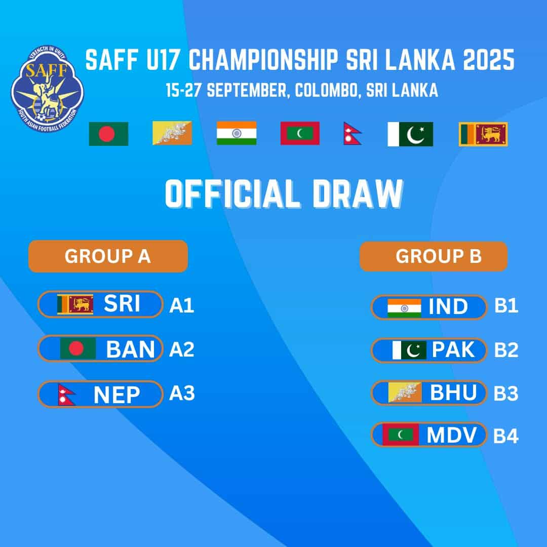 काठमाडौं (हाम्रो खेलकुद)- श्रीलंकाको कोलम्बोमा हुने साफ यु-१७ च्याम्पियनसिपको ड्र आज सार्वजनिक भएको छ।