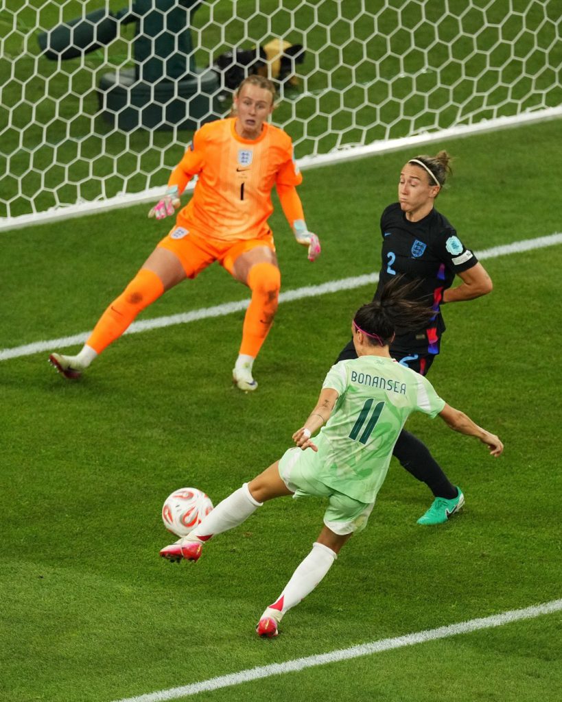 मिचेल अजेमेंगले इन्जुरी समयको छैंटौं मिनेटमा बराबरी गोल गर्दै इंग्ल्याण्डलाई खेलमा कायम राखिन्।
