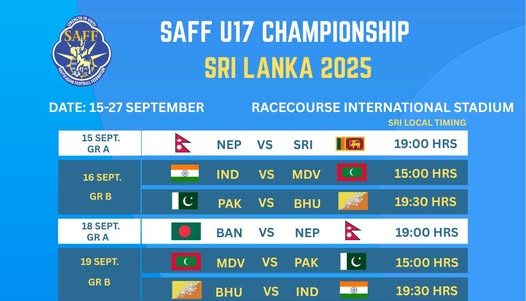 काठमाडौं (हाम्रो खेलकुद) – नेपाल र बंगलादेश साफ यु १७ च्याम्पियनसिप २०२५ को एकै समूहमा परेका छन् ।