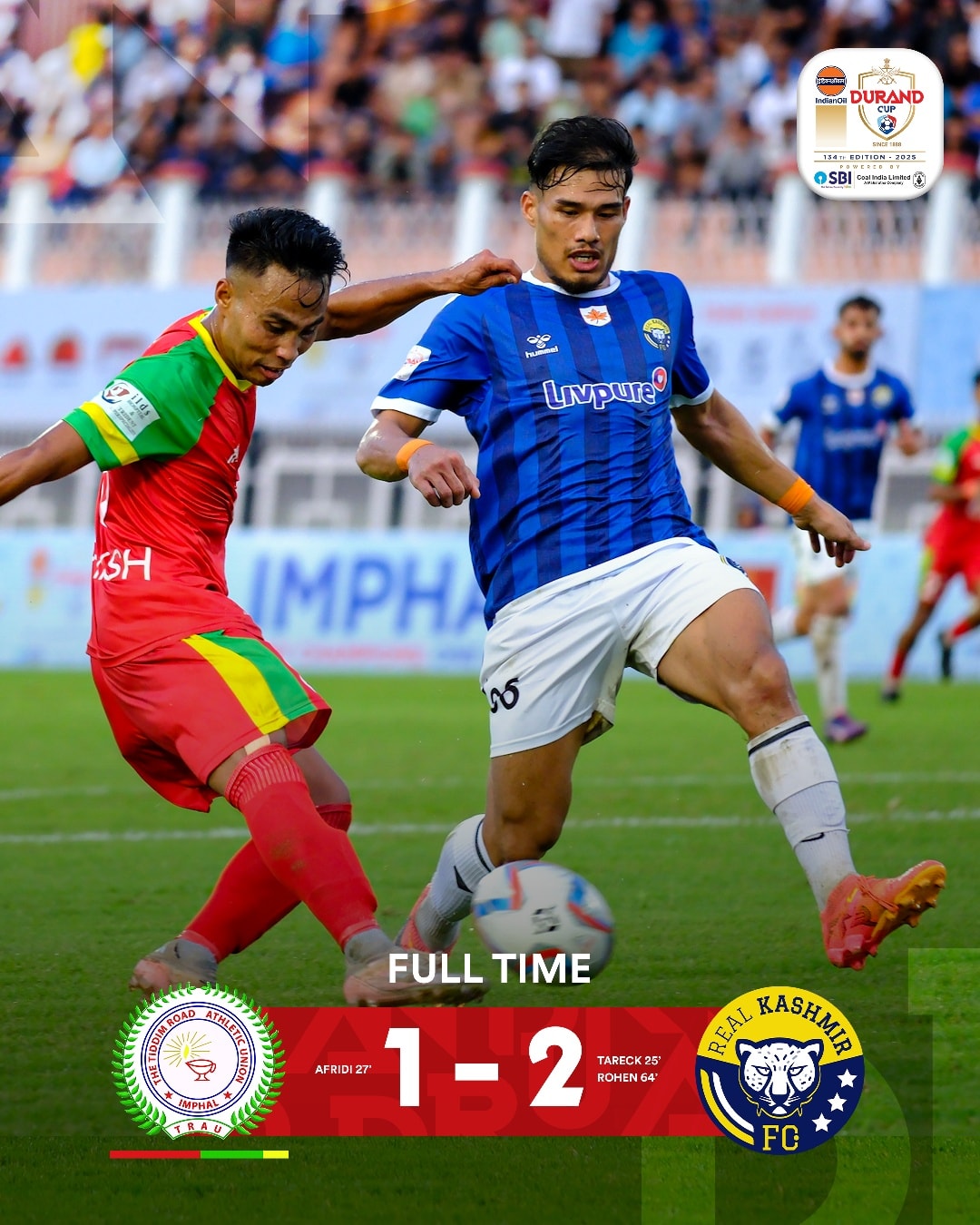 खुमन लम्पाक रंगशालामा सोमवार कश्मीरले ट्राउ एफसीलाई २-१ ले पराजित गरेको हो । रियल कश्मीरको जितमा मरात तारेक र रोहेन सिंहले गोल गरे । ट्राउका अफ्रिदी बुइमायुमले गोल गरे।