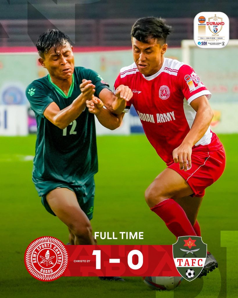 जमशेदपुरस्थित जेआरडी स्पोर्टस कम्प्लेक्स मंगलवार इण्डियन आर्मी फुटबल टिमसँग १-० ले पराजित भएसँगै आर्मी प्रतियोगिताबाट बाहिरिएको हो ।